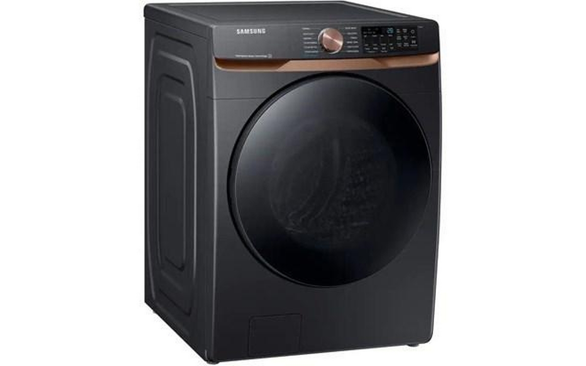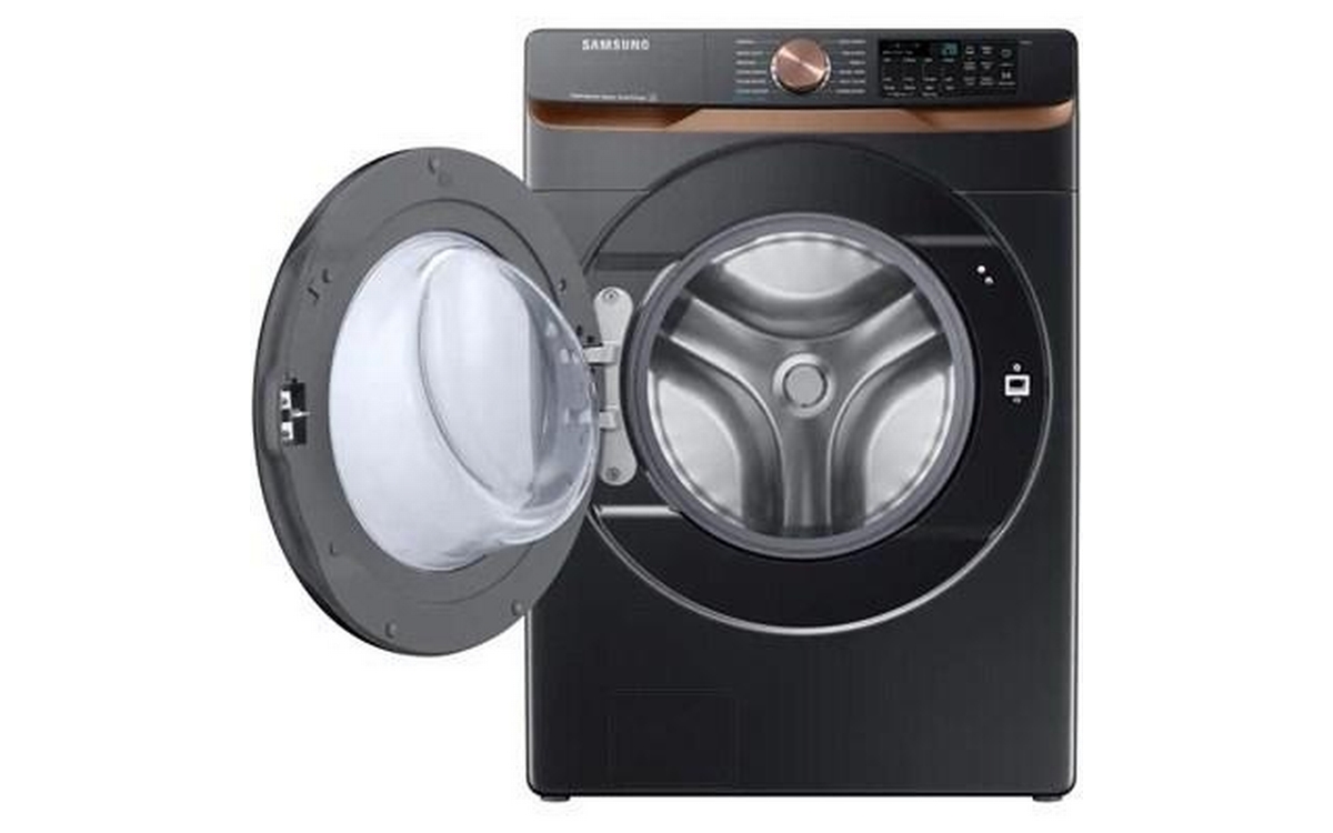 Extra Large Capacity Smart Front Load Washer in Brushed Black with Wi-Fi Connectivity, Super Speed Wash and Steam.