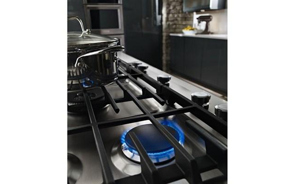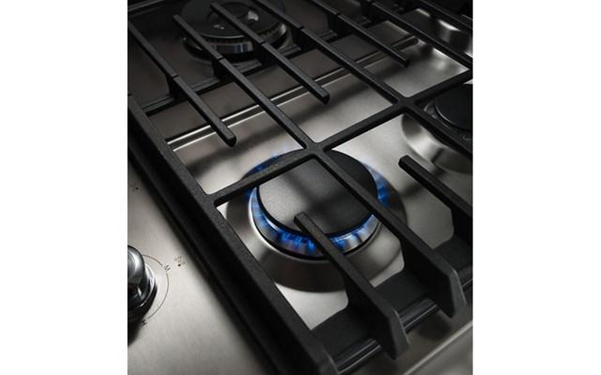 This 30-inch gas cooktop provides exceptional power with five individual burners, including a powerful 17,000 BTU Dual Ring Burner. For added versatility, the 6,000 BTU Even-Heat™ Simmer Burner creates ideal conditions to melt without scorching. The CookShield Finish protects the cooktop against stains that may occur due to high-temperature cooking and makes it easy to wipe clean without harsh chemicals.