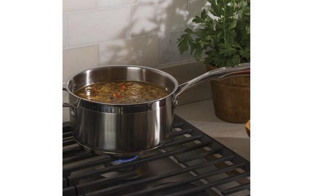 This GE® 30" built-in gas cooktop features heavy-cast, edge-to-edge dishwasher safe grates and a precise simmer burner.