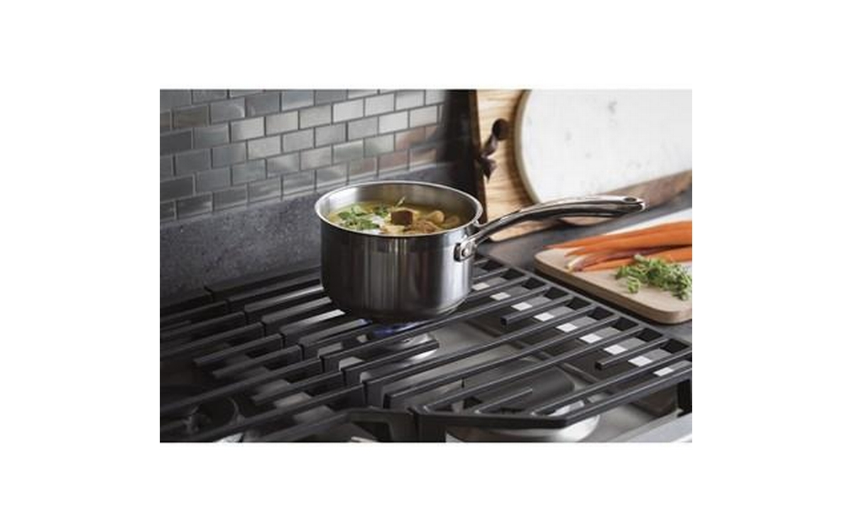 This GE Profile™ series 30" built-in gas cooktop features heavy-cast, edge-to-edge dishwasher safe grates and a precise simmer burner.