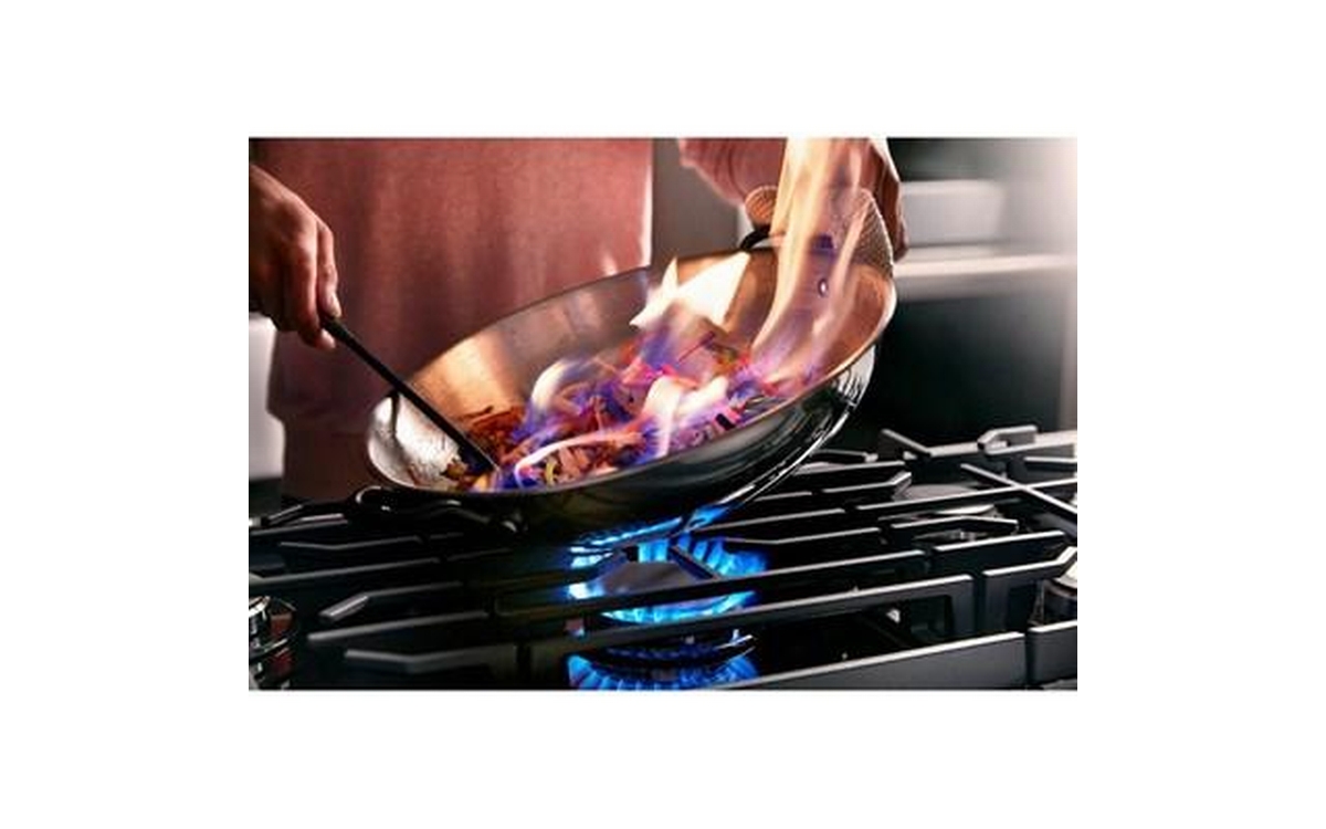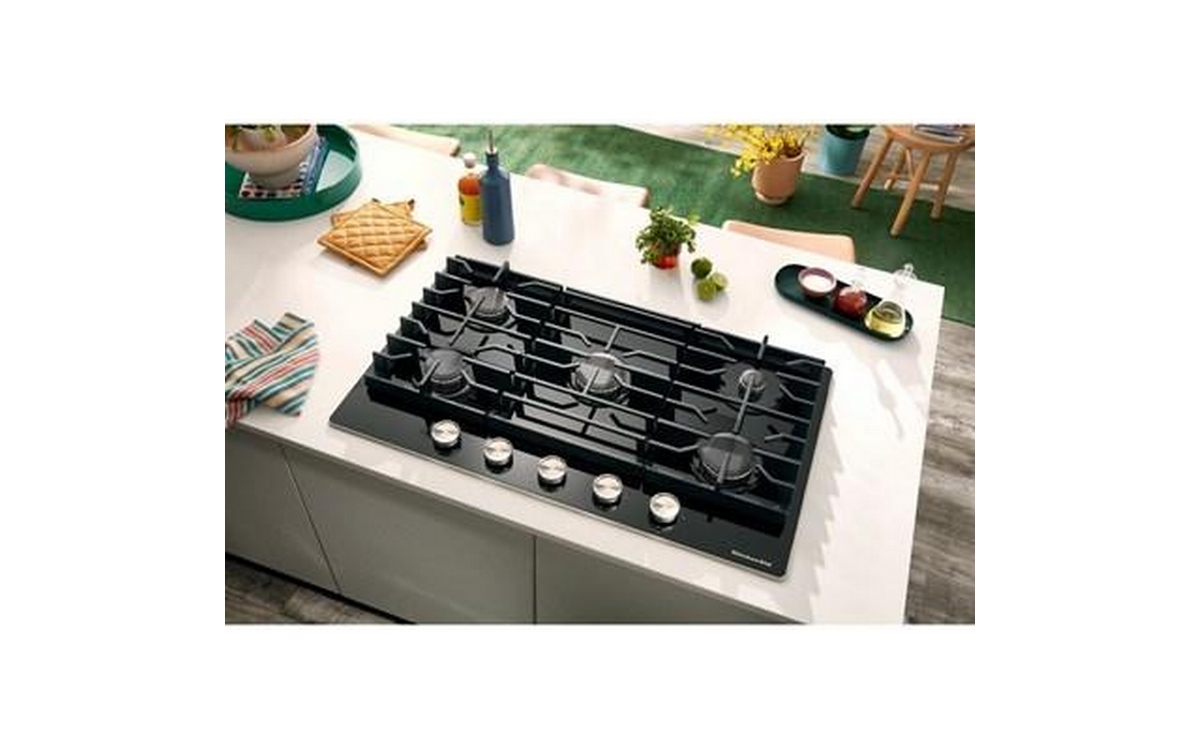 This KitchenAid® Gas-on-Glass Cooktop is both easy to clean and the most powerful gas-on-glass cooktop based on total BTU. 56.2K total BTUS including a central 18k BTU Burner help ensure every meal is heated to perfection, while a glass top and dishwasher-safe elements like professionally inspired knobs and cast-iron grates, make cleaning up meals almost as easy as making them.