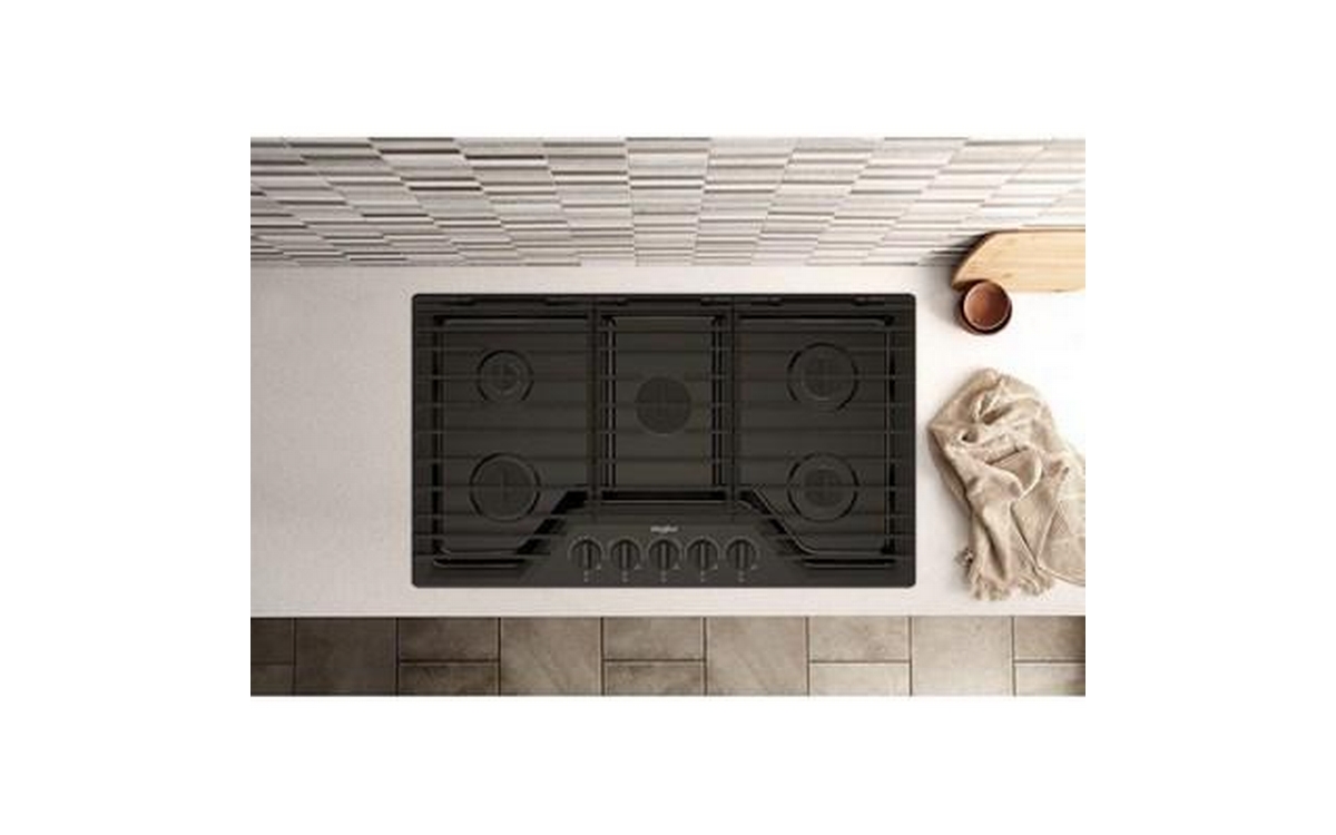 Whirlpool 36-Inch Built-In Gas Cooktop With Ez-2-Lift™ Hinged Cast-Iron Grates - WCGK5036PB