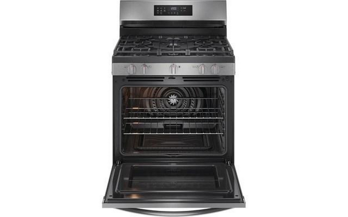 Frigidaire 30-inch gas range features 5 burners, Air Fry technology and a total oven capacity of 5.1 cu. ft.