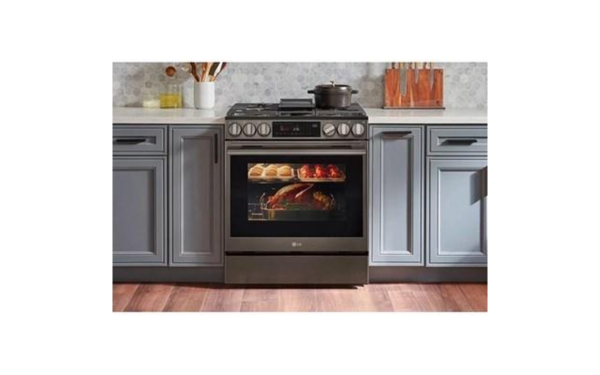 LG 6.3 cu ft. smart wi-fi enabled ProBake Convection® InstaView® gas slide-in range with Air Fry. It features the ThinQ® technology with Proactive customer care, an EasyClean® + self clean oven and a 3-in-1 element.