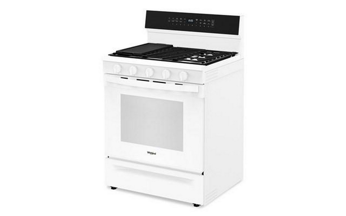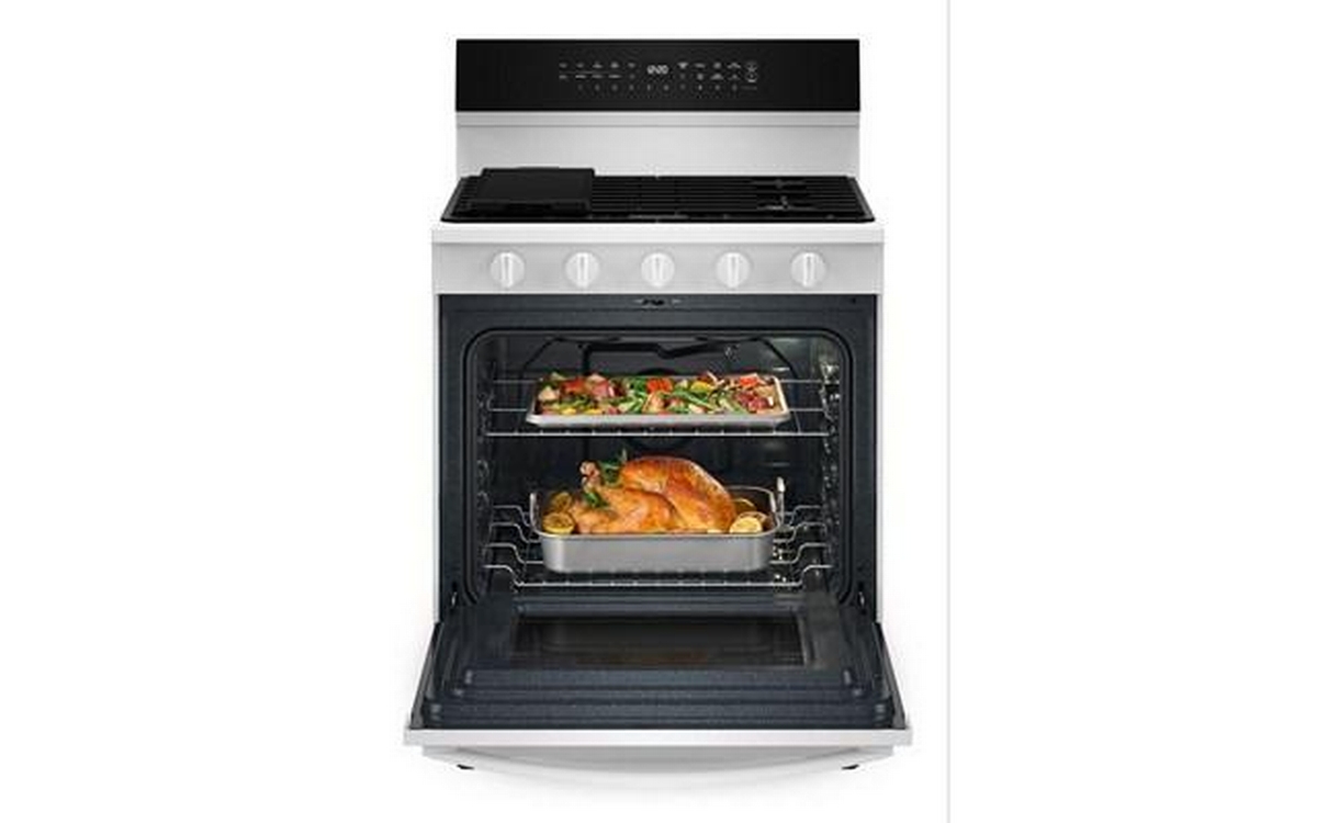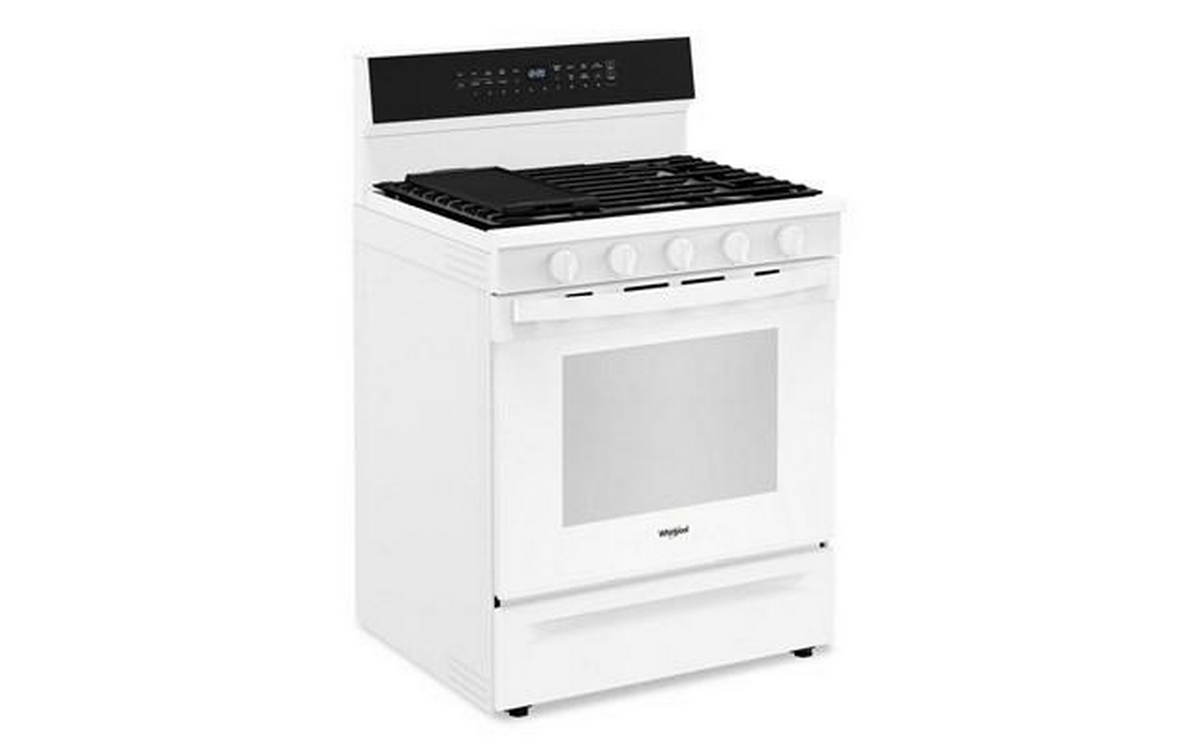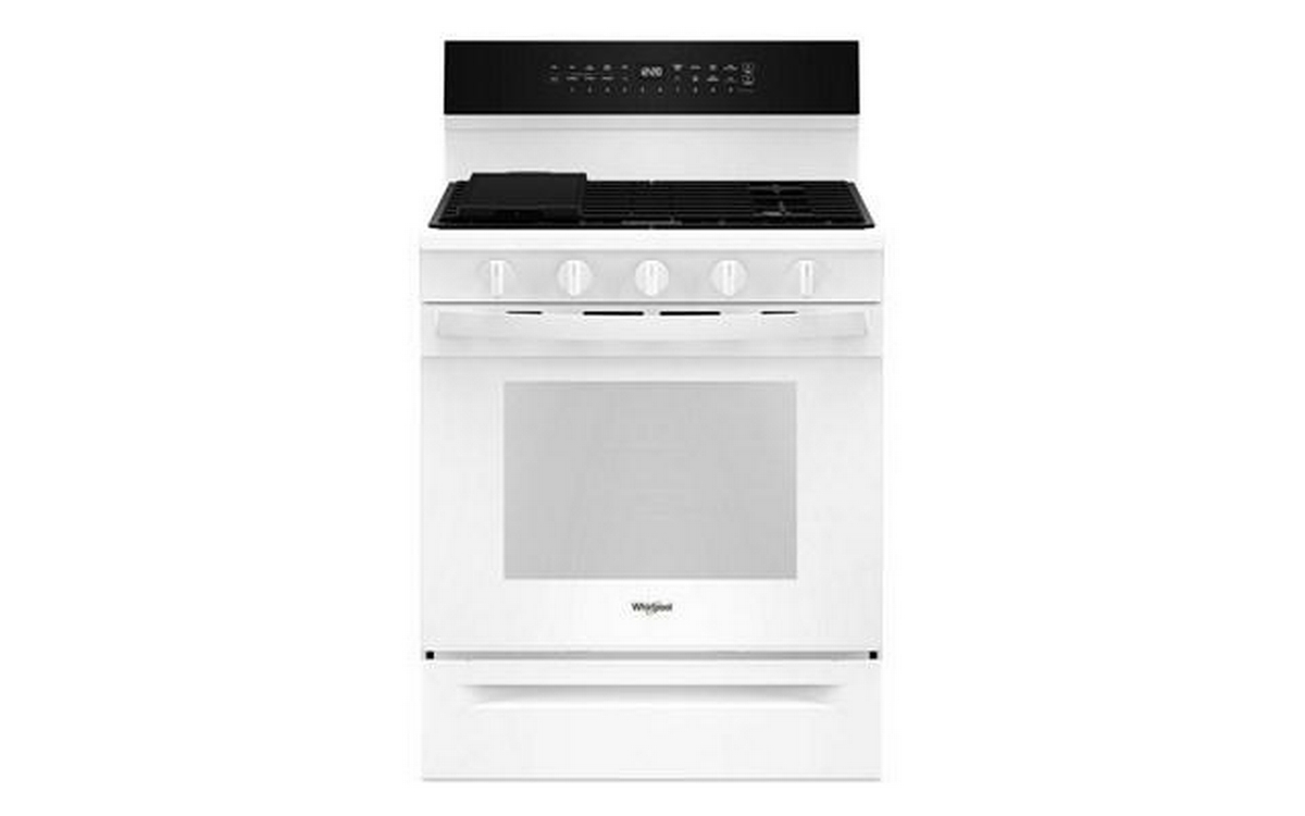 The Whirlpool 30-inch Freestanding Gas Range features Air Fry Technology and a spacious 5.3 cu. ft. oven capacity. This range offers versatile cooking options and ample space, allowing you to prepare healthier, crispy dishes right in your oven.