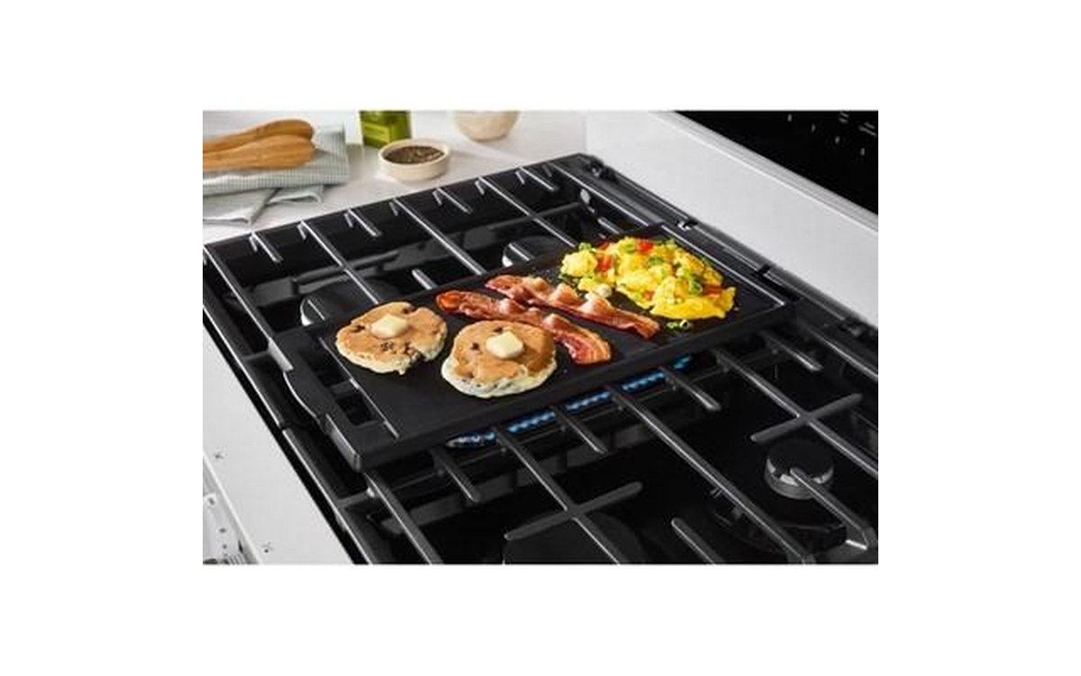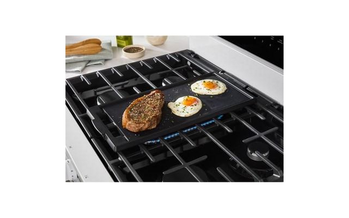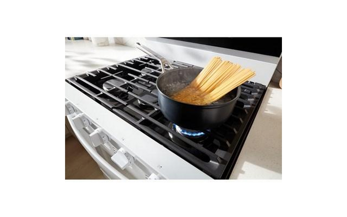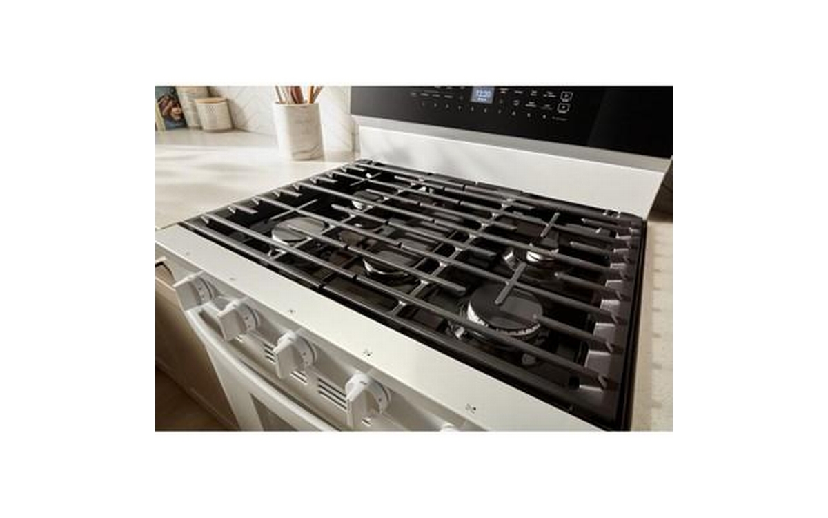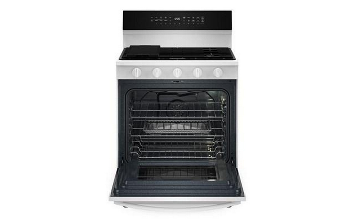 The Whirlpool 30-inch Freestanding Gas Range features Air Fry Technology and a spacious 5.3 cu. ft. oven capacity. This range offers versatile cooking options and ample space, allowing you to prepare healthier, crispy dishes right in your oven.