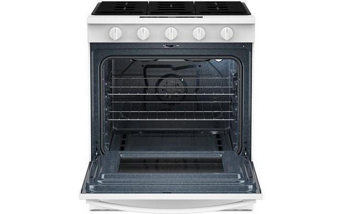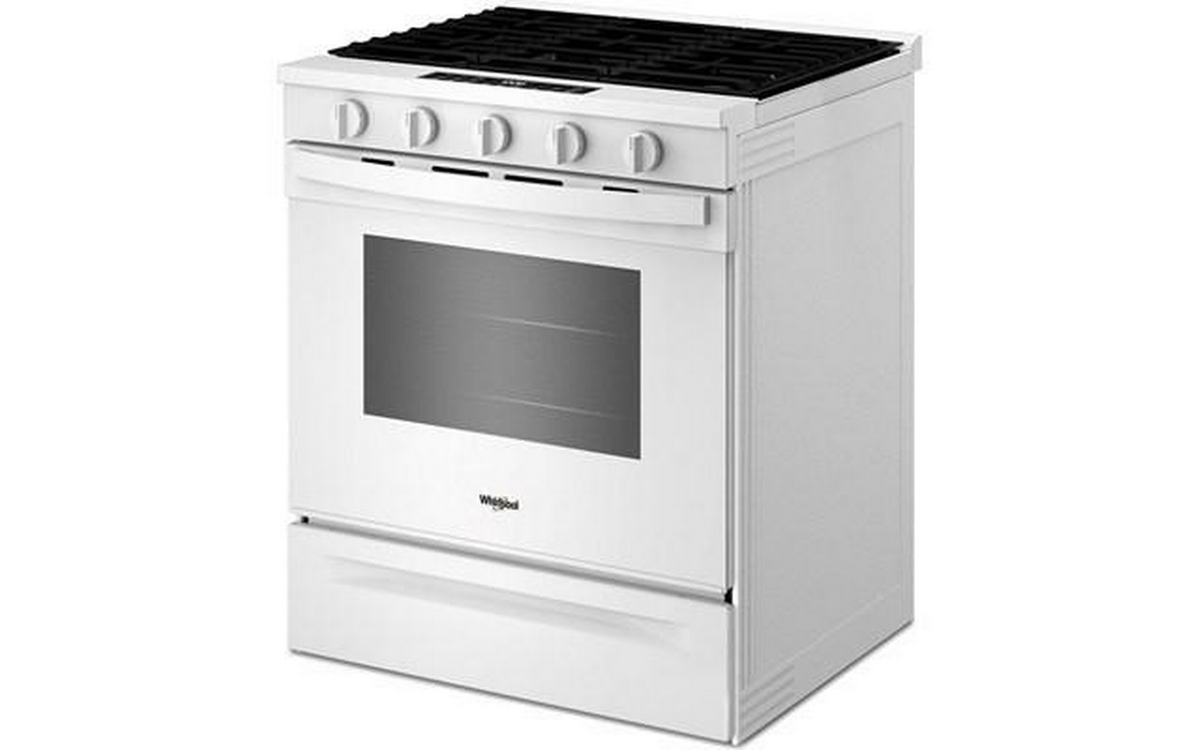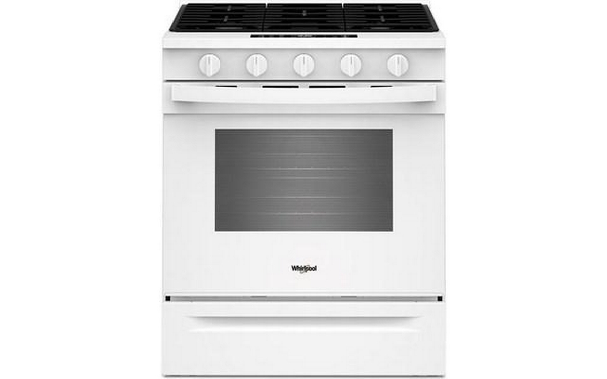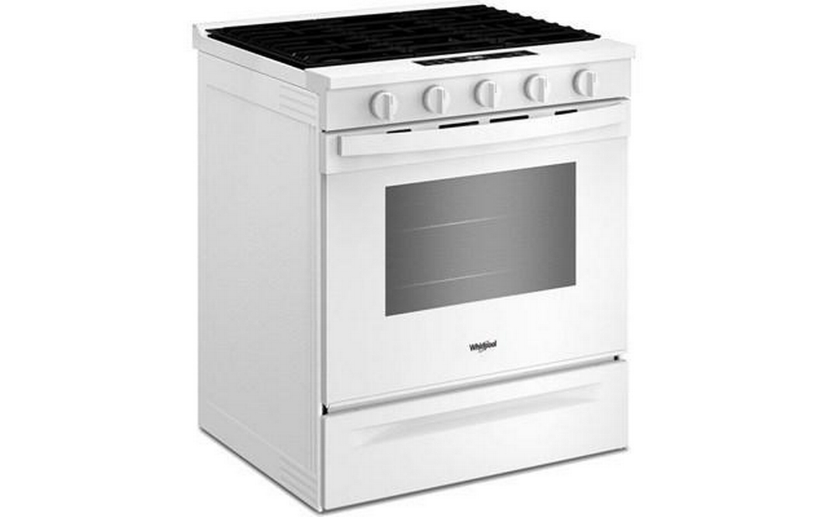 Upgrade your kitchen with the Whirlpool 30-inch slide-in gas range, featuring 5 powerful cooktop burners, built-in Wi-Fi, Convection Technology for even baking, and Air Fry Technology for crispy results without the extra oil.