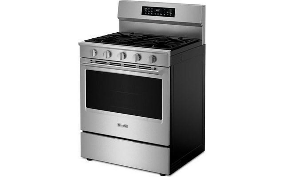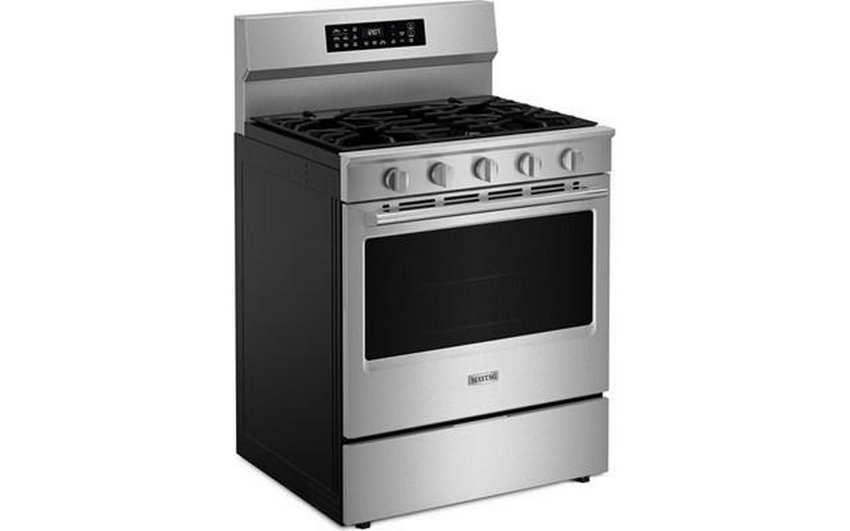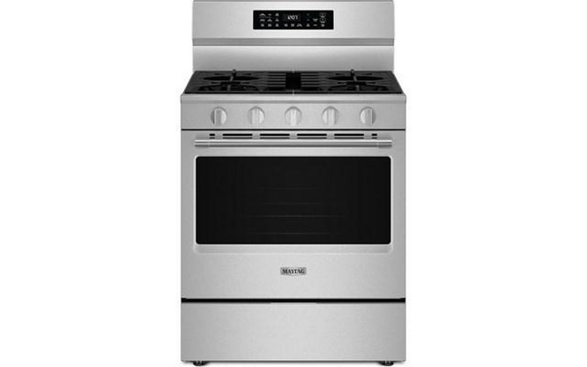 The Maytag 30-inch gas range delivers powerful performance with 5 versatile cooktop burners, a sleek digital display, and Air Fry technology—making it easy to cook crispy, delicious meals without the need for extra appliances.