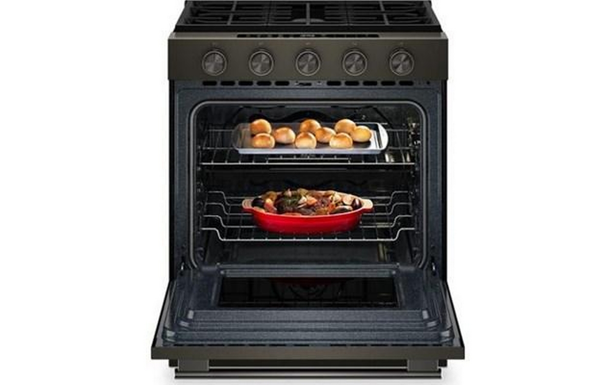KitchenAid 5.0 Cu. Ft. Smart Slide-in Gas Range with Convection Cooking Modes and 2-in-1 Burner. Enjoy a range of possibilities with our most powerful KitchenAid 30-inch Gas Range available, featuring the industry’s most powerful and largest 2-in-1 burner for an unparalleled and versatile cooking experience. Convection Cooking Modes help you get consistent results with optimal temperatures. A Steam Bake mode works with the included steam rack to provide additional moisture during baking, so you can enjoy Basque cheesecake and other delicious desserts. The range is designed to be personalized with a curated palette of exterior finishes and mixed metal hardware. It’s also a Wi-Fi-enabled Smart Appliance model with smart features and mobile app experience.