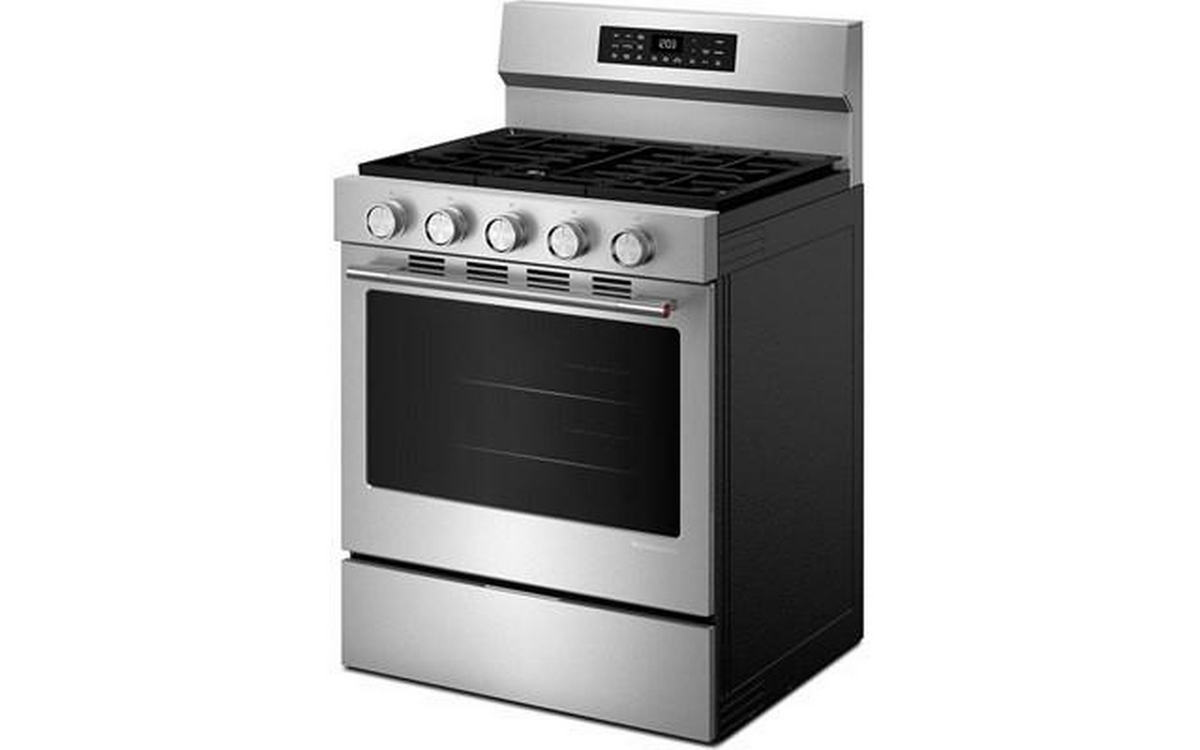 Enjoy a range of possibilities with our most powerful KitchenAid 30-inch Gas Range available. A WiFi-enabled Smart Appliance featuring Convection Cooking Modes that help you get consistent results with optimal temperatures. A spacious 5.0 Cu. Ft. Capacity and optimized oven system design with Rapid Preheat gets your oven to 350°F in under 8 minutes*. Keep your oven clean with two distinct cleaning cycles: the Steam Clean Cycle, perfect for quick, routine maintenance, and the high-temperature Self-Clean Cycle for a deeper clean. *Using Rapid Preheat to 350 degrees when cooktop is not in use.