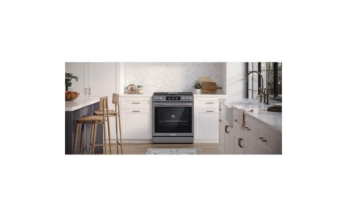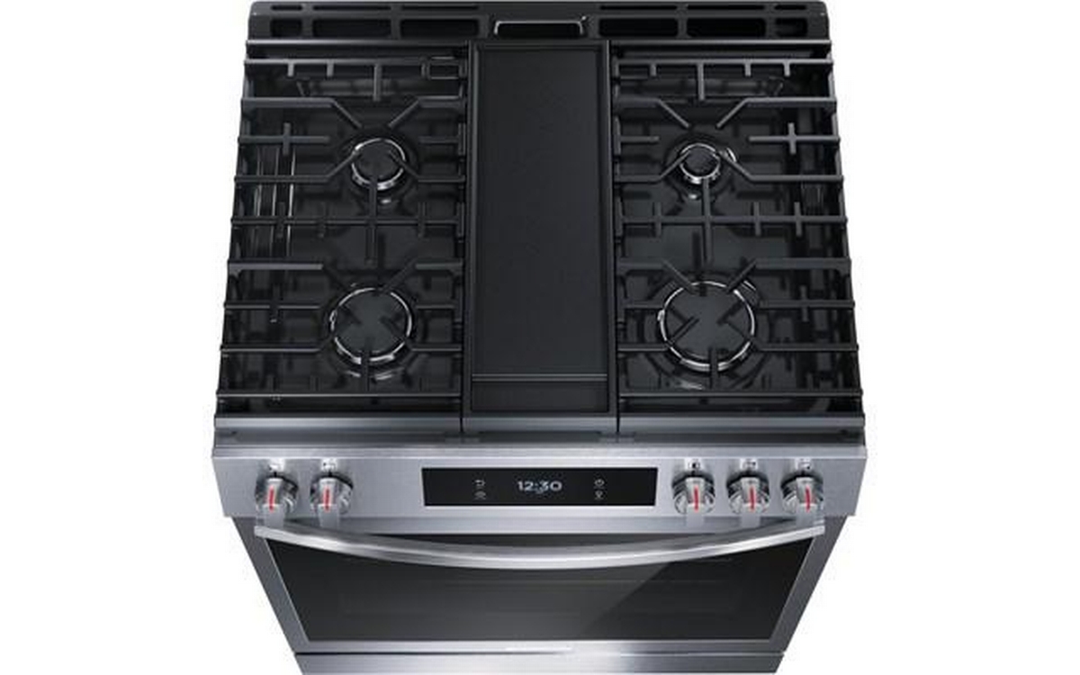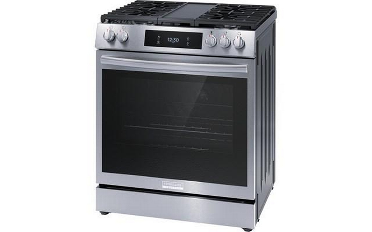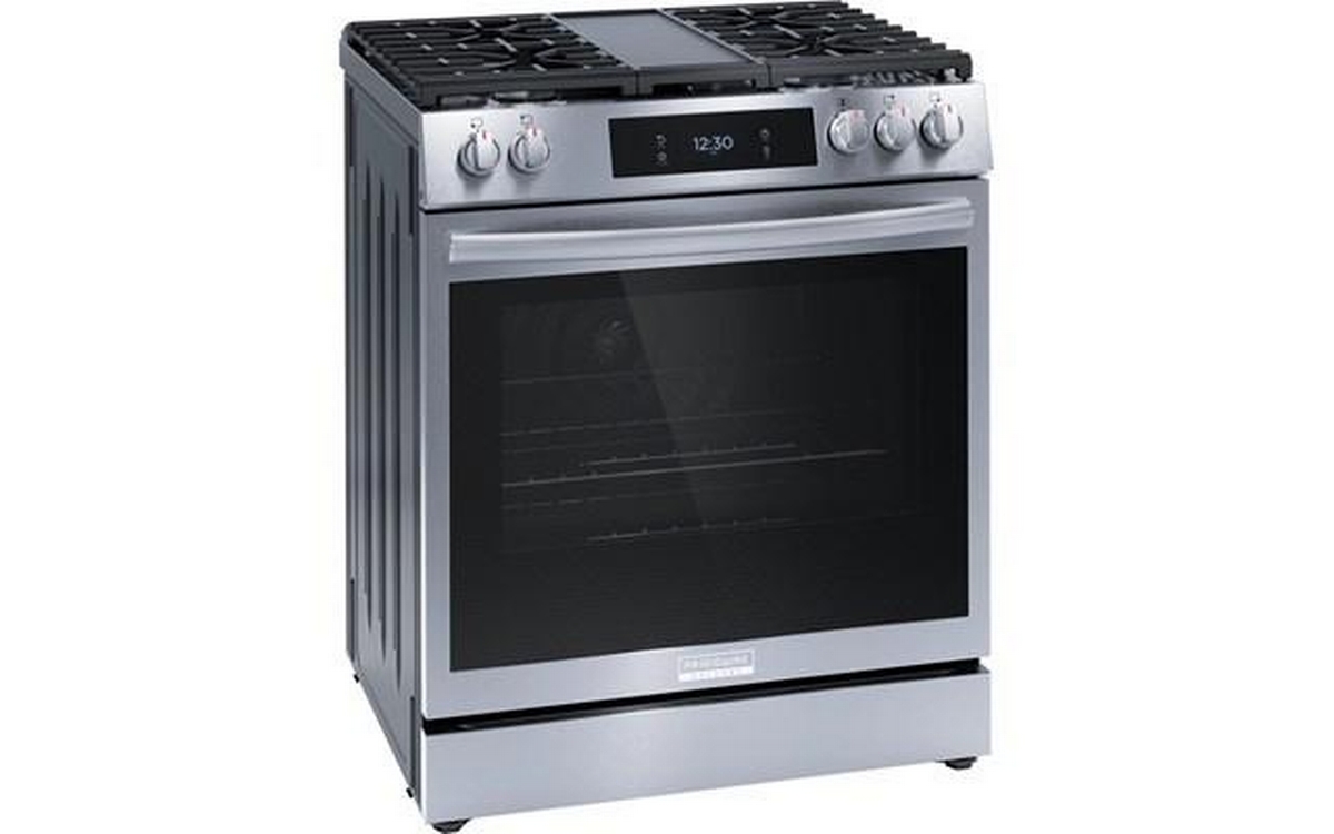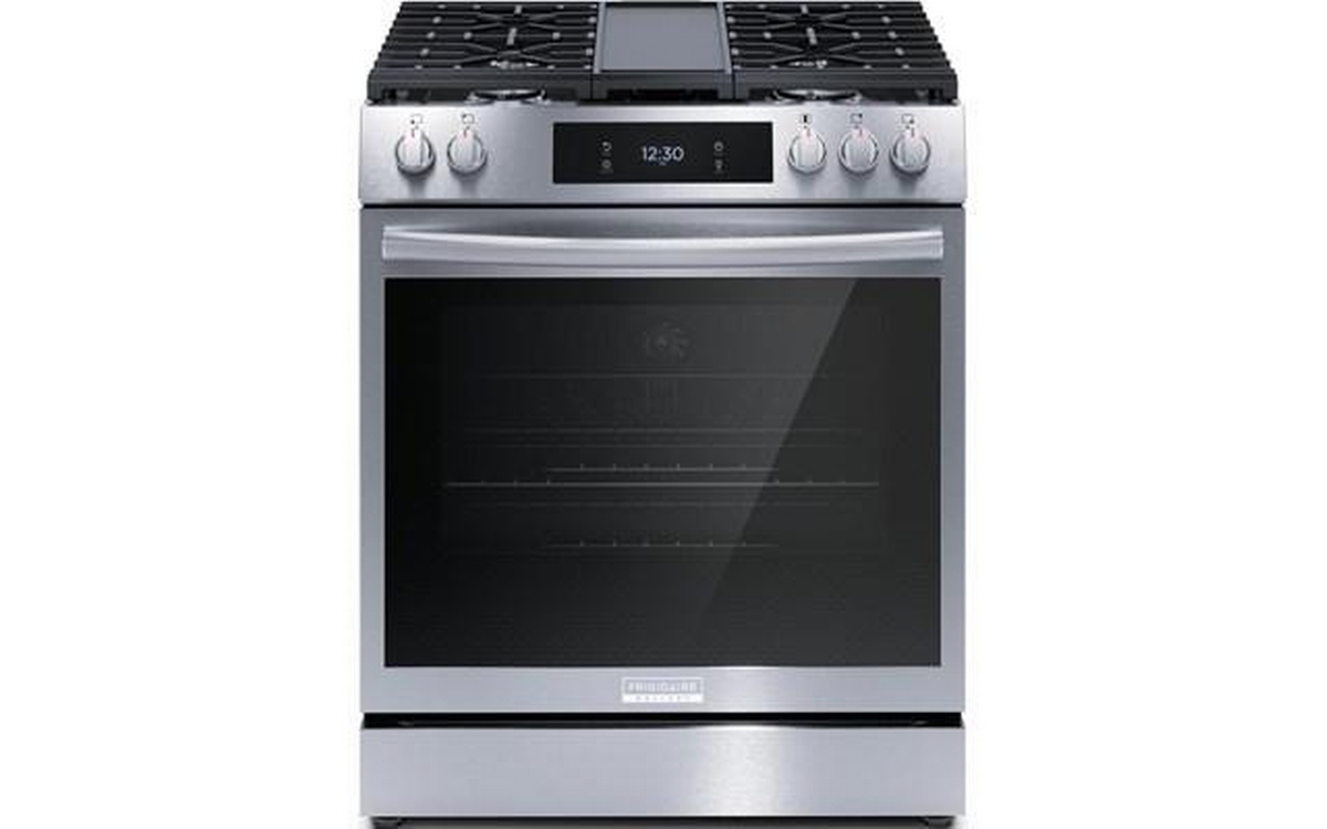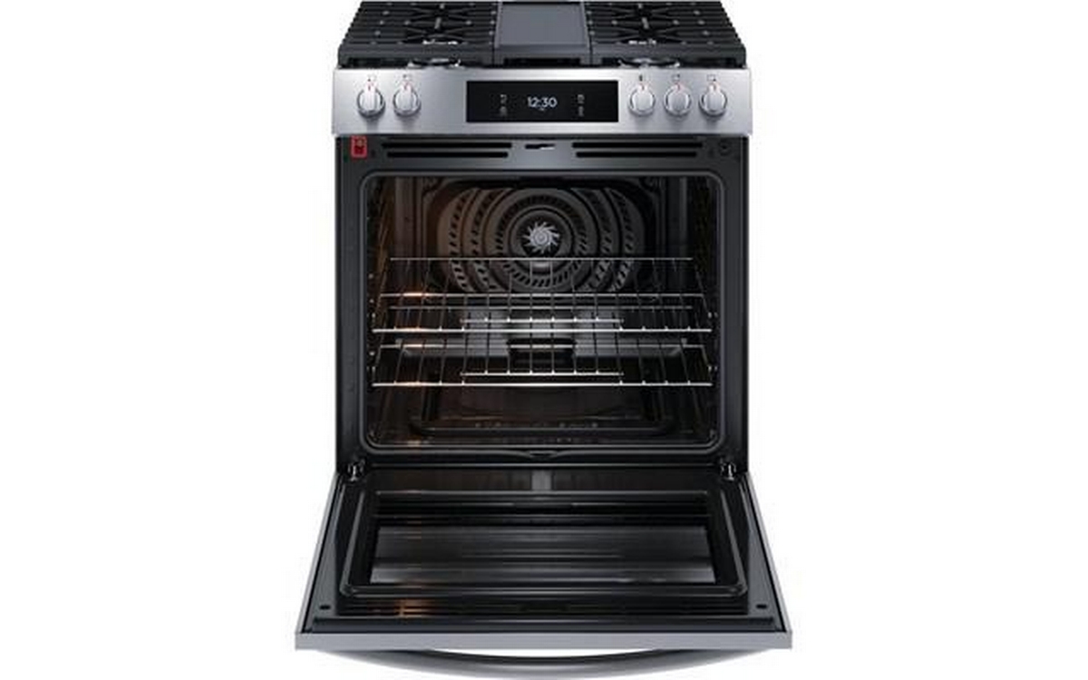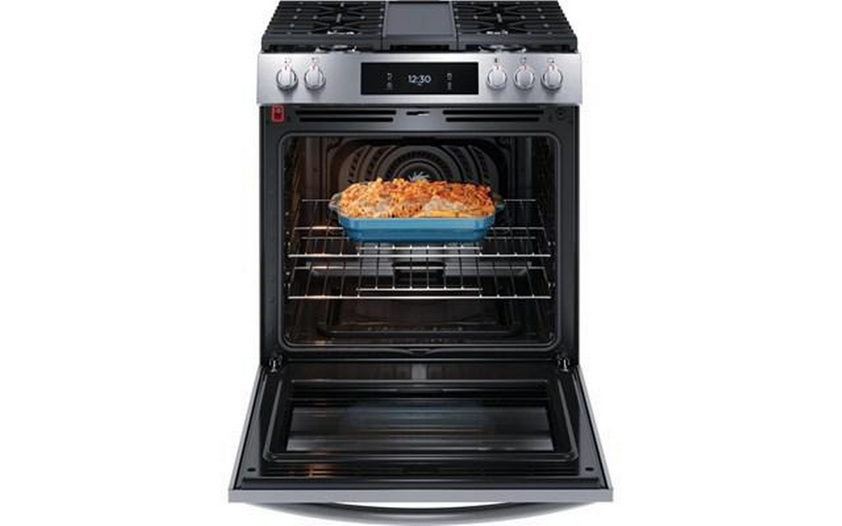 Frigidaire Gallery 30-inch gas range with Convection technology, digital display and 5 cooktop burners.