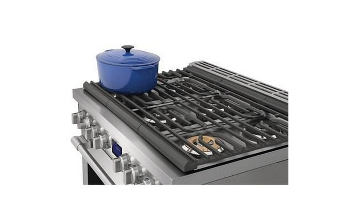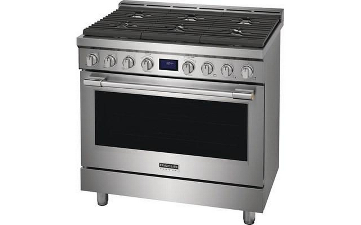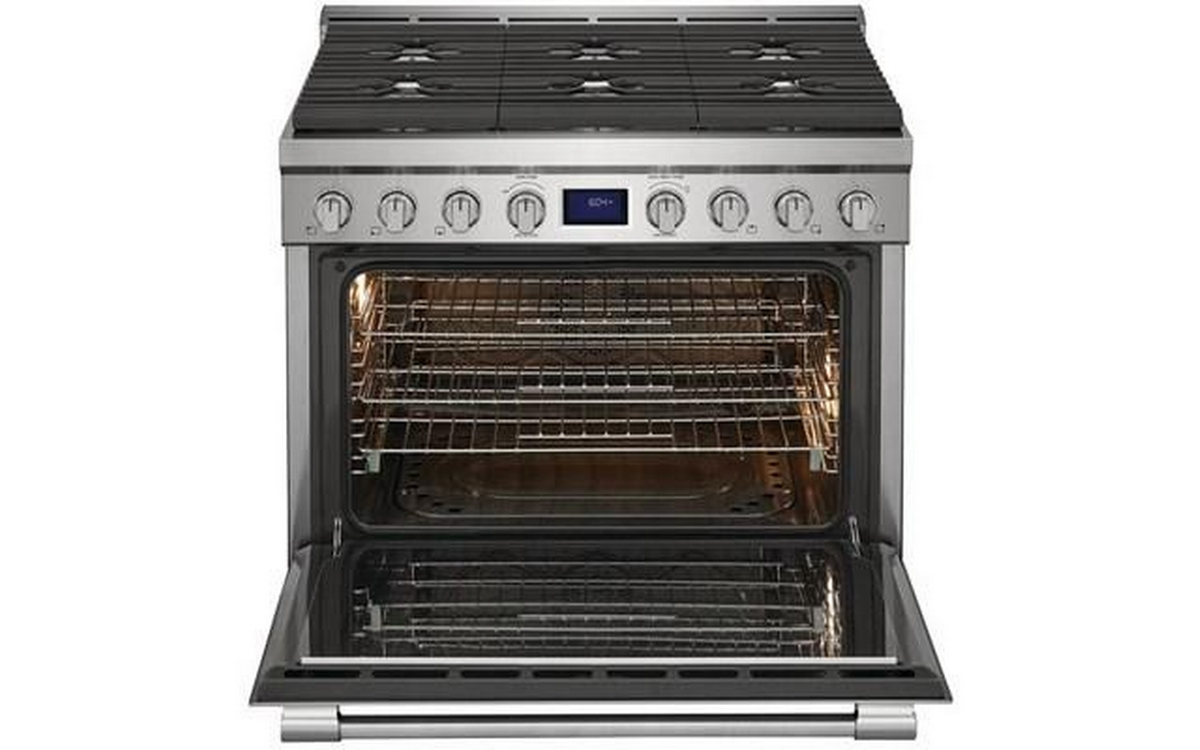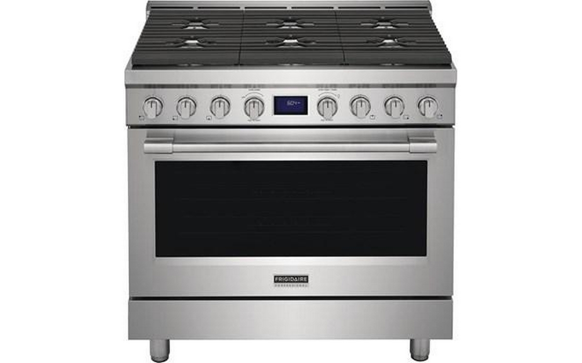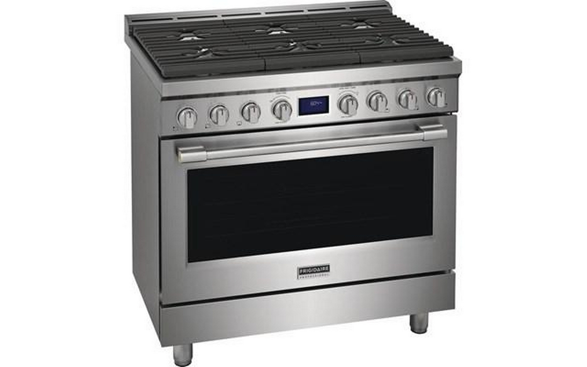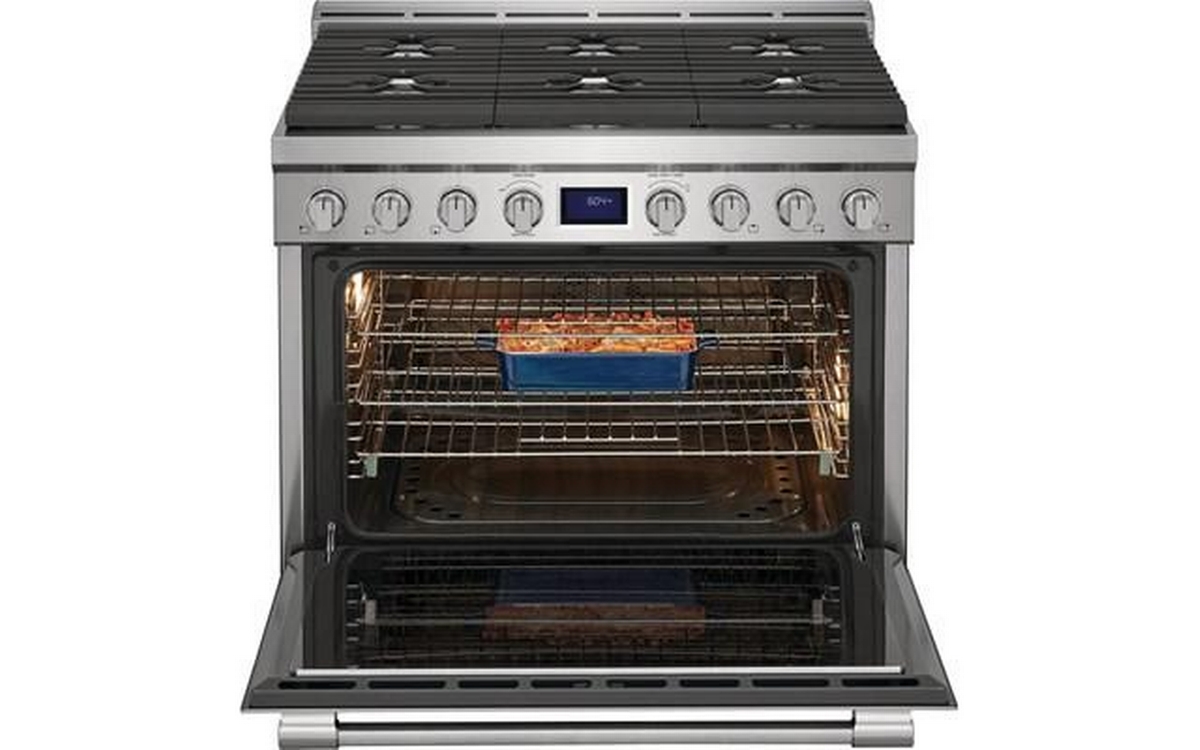 Frigidaire Professional 36-inch gas range feature True Convection Technology, 6 cooktop burners, temperature probe and a total oven capacity of 4.4 pi. cu.
