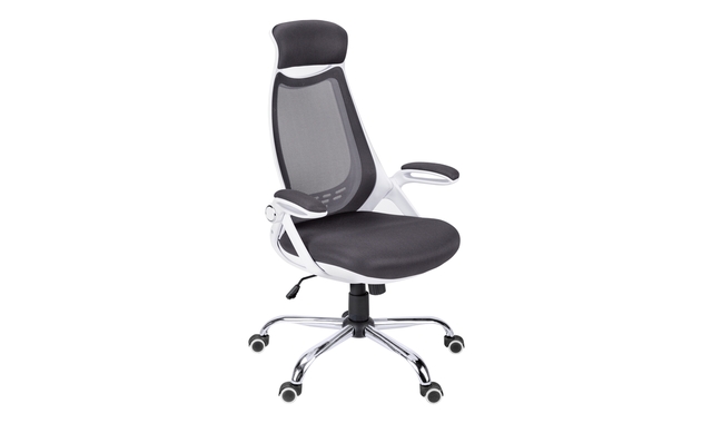 If a good office chair is a necessity, this supremely comforTable executive desk chair feels like a luxury. Generous padding gives the headrest, flip-up armrests, and seat outstanding softness. The padded seat is also extra thick, wide, and deep to provide a satisfyingly roomy feel. The supportive, high backrest is wide and has a curved, ergonomic design that promotes good posture. Sitting still isn't necessary thanks to the swivel seat and 5-star chrome metal base with casters that make moving around your workspace easy. This adjustable-height chair with tilt control is upholstered in a grey mesh fabric that is breathable to help keep you cool as you work hard.