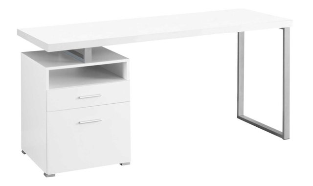 When your workstation needs to be both compact and functional, this desk is there for you, and its white finish is easy on the eyes! This computer desk has everything you need to complete your tasks. A solid silver metal frame, 3 practical storage drawers (1 for standard/legal size documents) - a recipe for success! The 60-inch length is perfect for your small house, apartment or condo, but the desk gives you ample space for a computer, lamp, notebooks and other supplies.