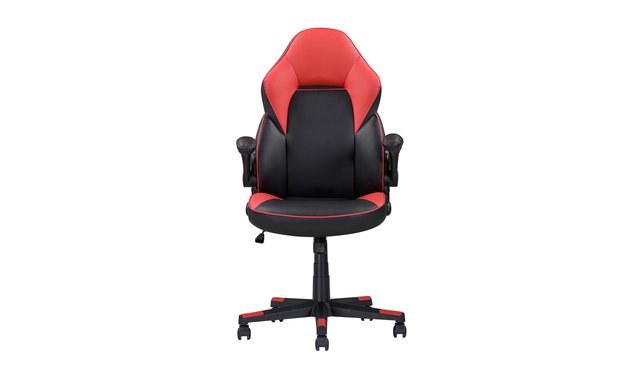 The Sealy® Gamer 115 Office Chair is your ultimate sidekick, whether you're dominating virtual battles or powering through work. With its bold design and ergonomic features, this chair blends style, comfort, and functionality effortlessly. The sleek faux leather upholstery and dynamic black-and-red accents bring energy to your setup, while the supportive armrests and 28-inch high back keep you comfortable during long sessions. Tailor your experience with a gas lift for height adjustment, smooth 360-degree swivel, and a 15-degree tilt for laid-back relaxation. Sturdy star-shaped legs and smooth-rolling nylon casters make mobility a breeze, so you can focus on what matters most—winning.