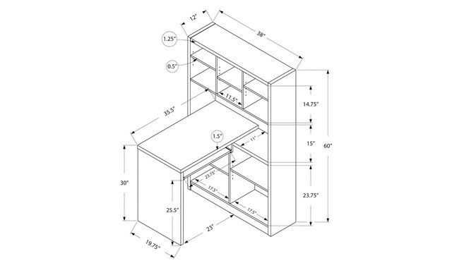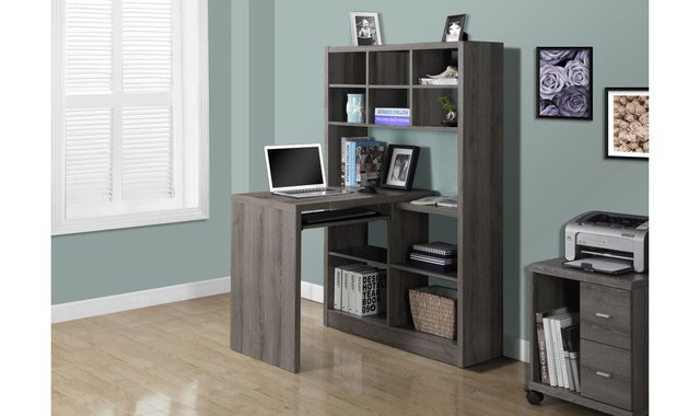 This contemporary desk offers the perfect combination of storage for your home office. The desk features a nesting keyboard tray and large storage spaces that can be positioned to the left or right of the unit allowing you to customize your space as needed. A versatile design piece for the home, office, bedroom and living space. Open and adjustable storage cubbies to help you stay organized.