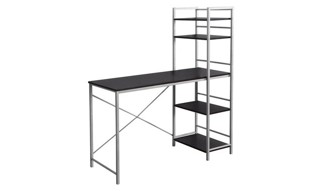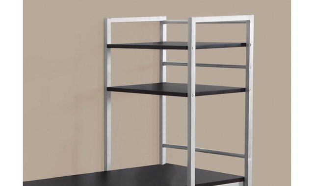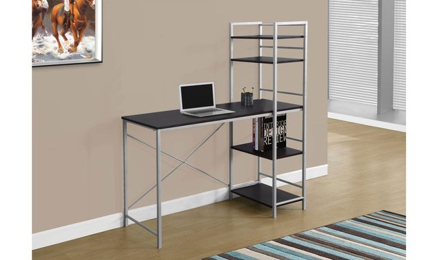 This simple, minimalist desk provides a compact workspace that is ideal for your apartment, condo or other small space. With its clean lines and cappuccino finish, this desk will easily match your home décor. 4 open and fixed shelves can be used to hold photos and decorative items while the large work surface provides ample space for your laptop and office supplies. This modern home office desk combines function, storage and style in one piece of furniture. Browse the section below for more ideas.