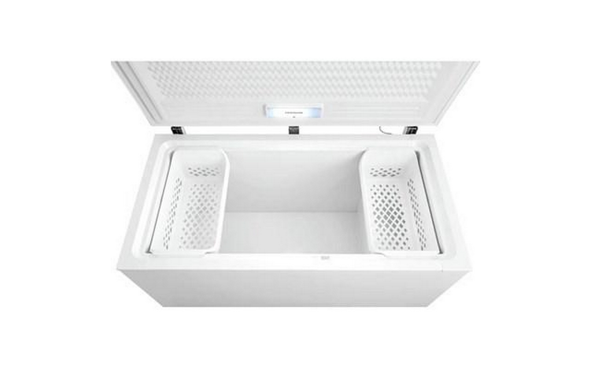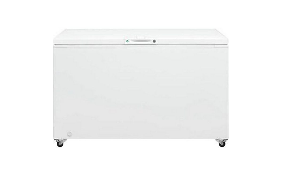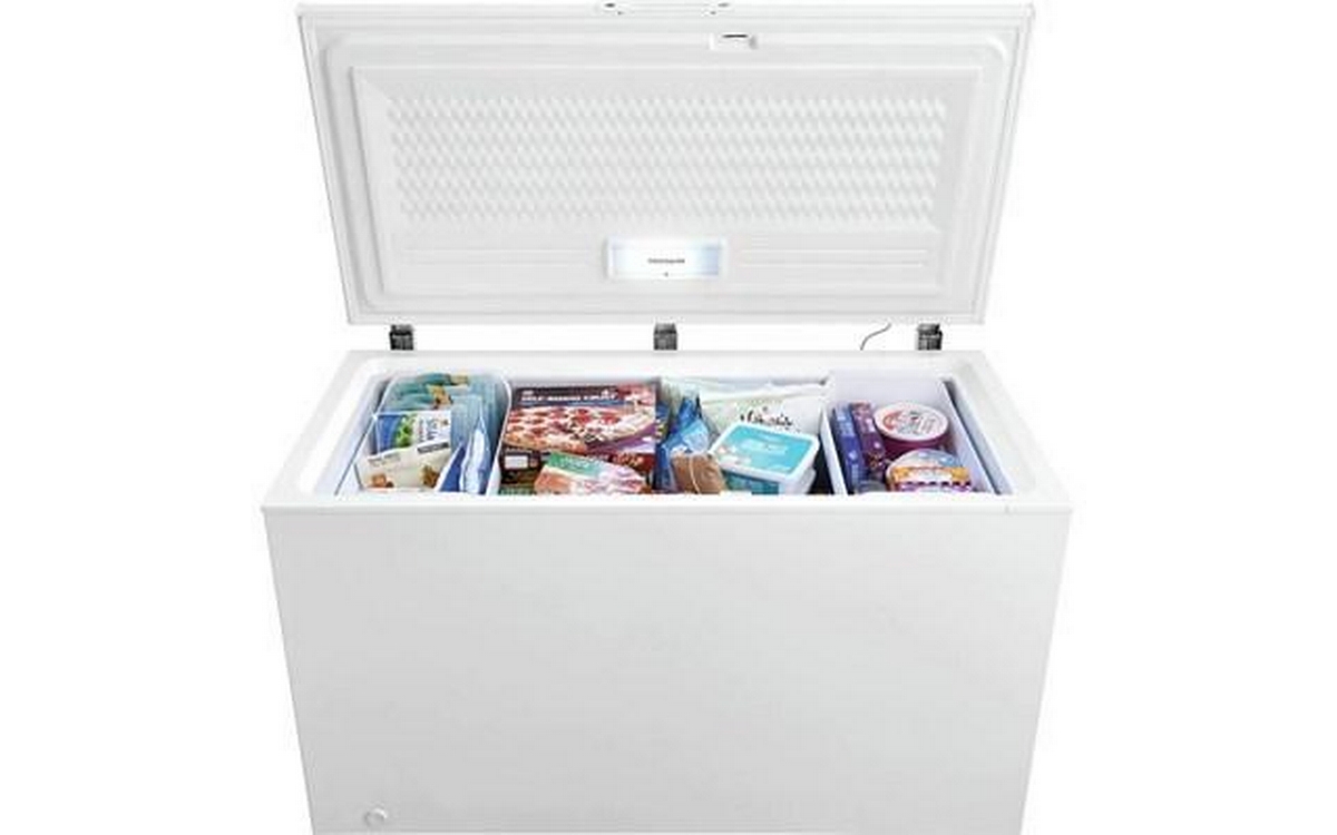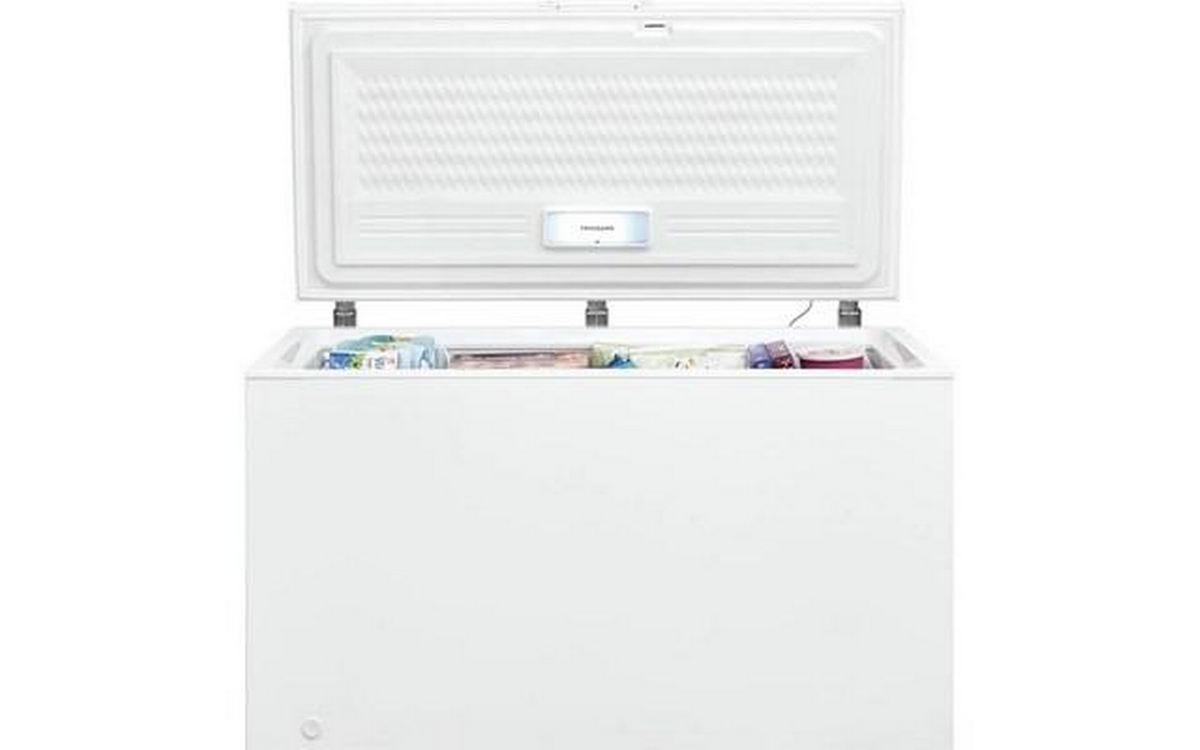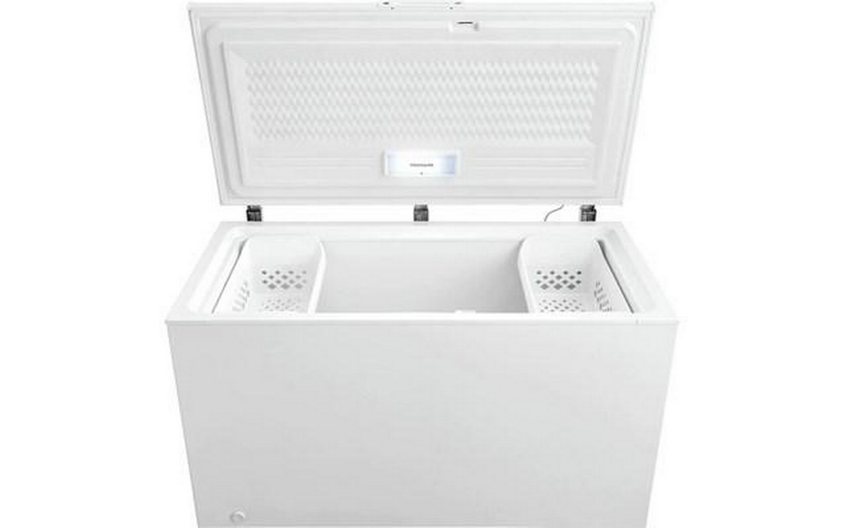 This Frigidaire 14.8 cu.ft. chest freezer features LED interior lighting, 2 baskets and a lock.