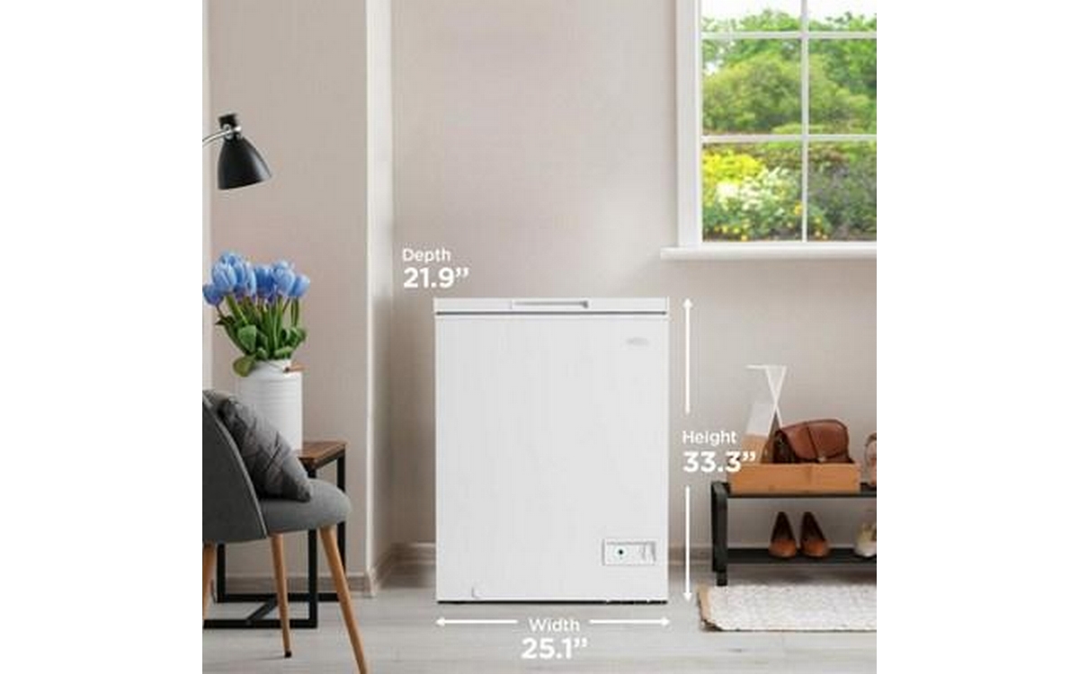 The Danby Diplomat 5.0 Cu. Ft. Chest Freezer is an ideal solution for households, cottages, offices, or any other location requiring additional storage space for frozen foods. Our power-on indicator light enables you to confirm the safety of your frozen items’ preservation quickly and conveniently. This model is Garage Ready & able to maintain optimal performance at external temperatures between 0°F to -110°F (-17°C to -43°C). The 360-degree cooling system utilizes D-shaped coils that snugly hug the inner wall to optimize the freezing time of newly added foods in the freezer, which preserves nutrients. This model is DOE-compliant, saving you energy and money. This freezer can sit closer to walls thanks to the new thinner profile hinges. Additionally, the counter-balance hinges enable the lid to stay open at any angle, providing easy access. The freezer is equipped with a removable storage basket to help you separate and organize your food.