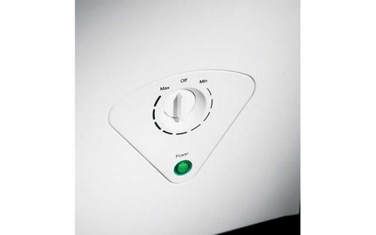 GE manual defrost chest freezer features an adjustable temperature control, a power "on" light, a slide-out basket and is garage ready.
