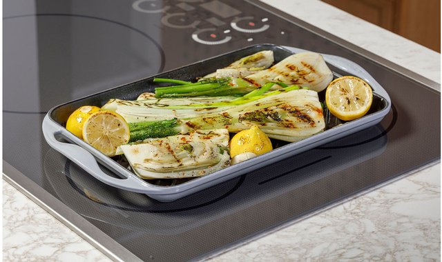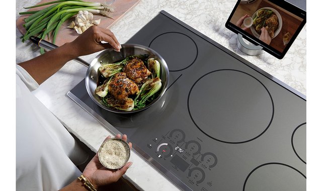 Café 30-inch induction cooktop features built-in Wi-Fi, Chef Connect, Rapid Broil and 19 different heat settings.