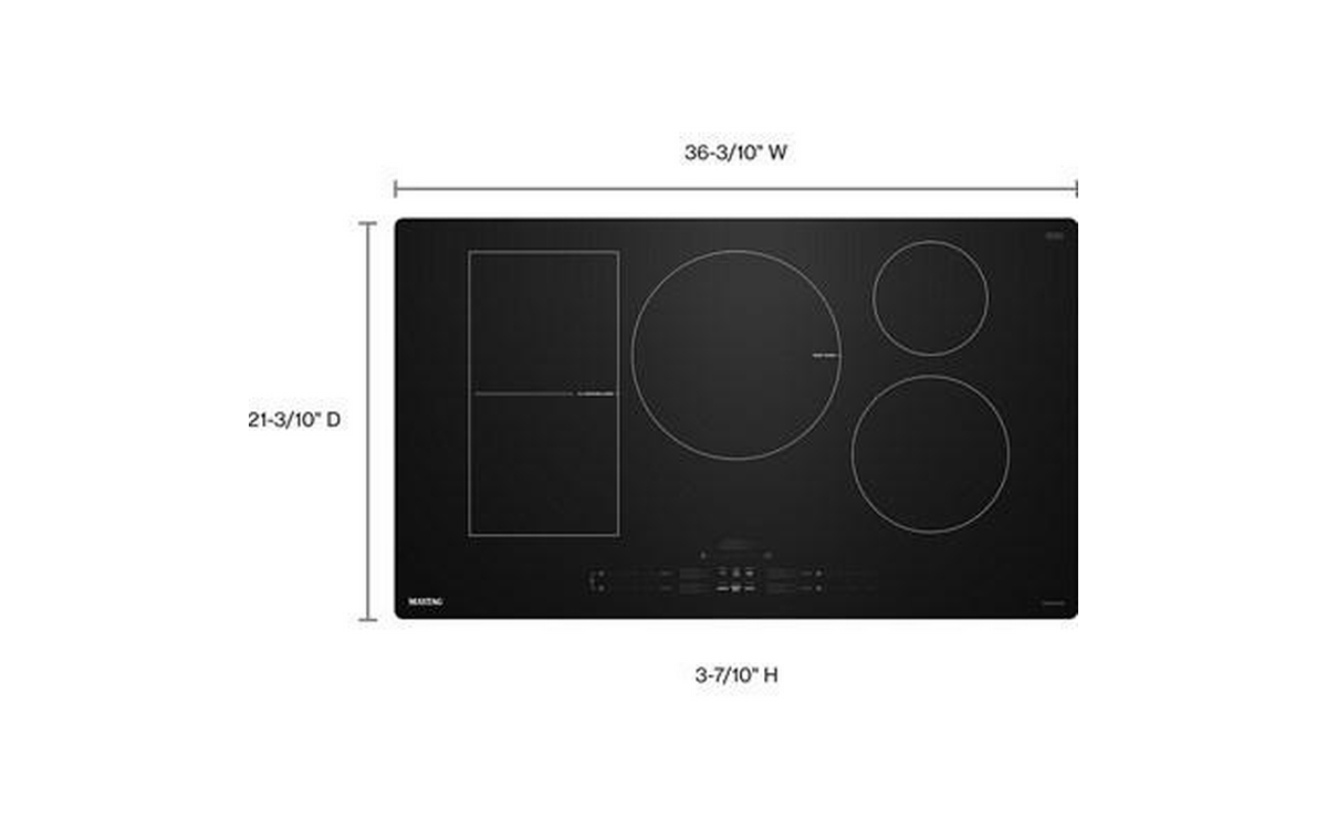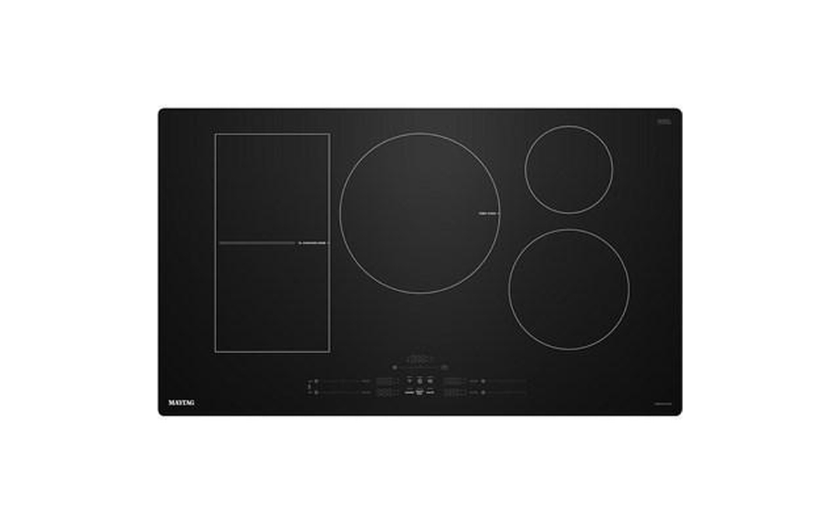 Maytag 36" Induction Cooktop: This sleek cooktop features rapid Power Boost heating, a user-friendly digital display, and 5 precise cooking zones for fast, efficient, and responsive performance.
