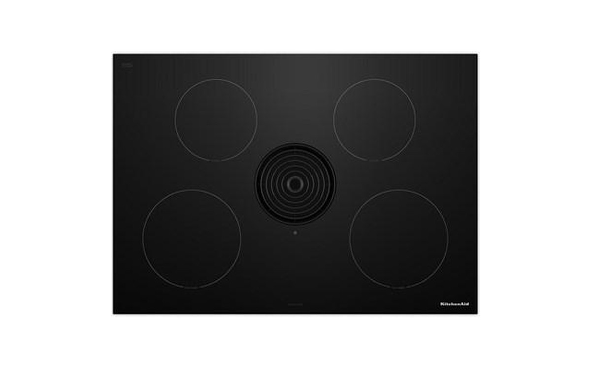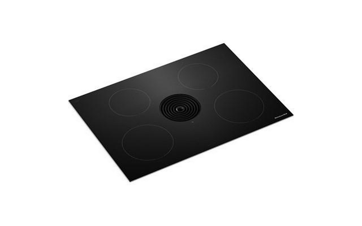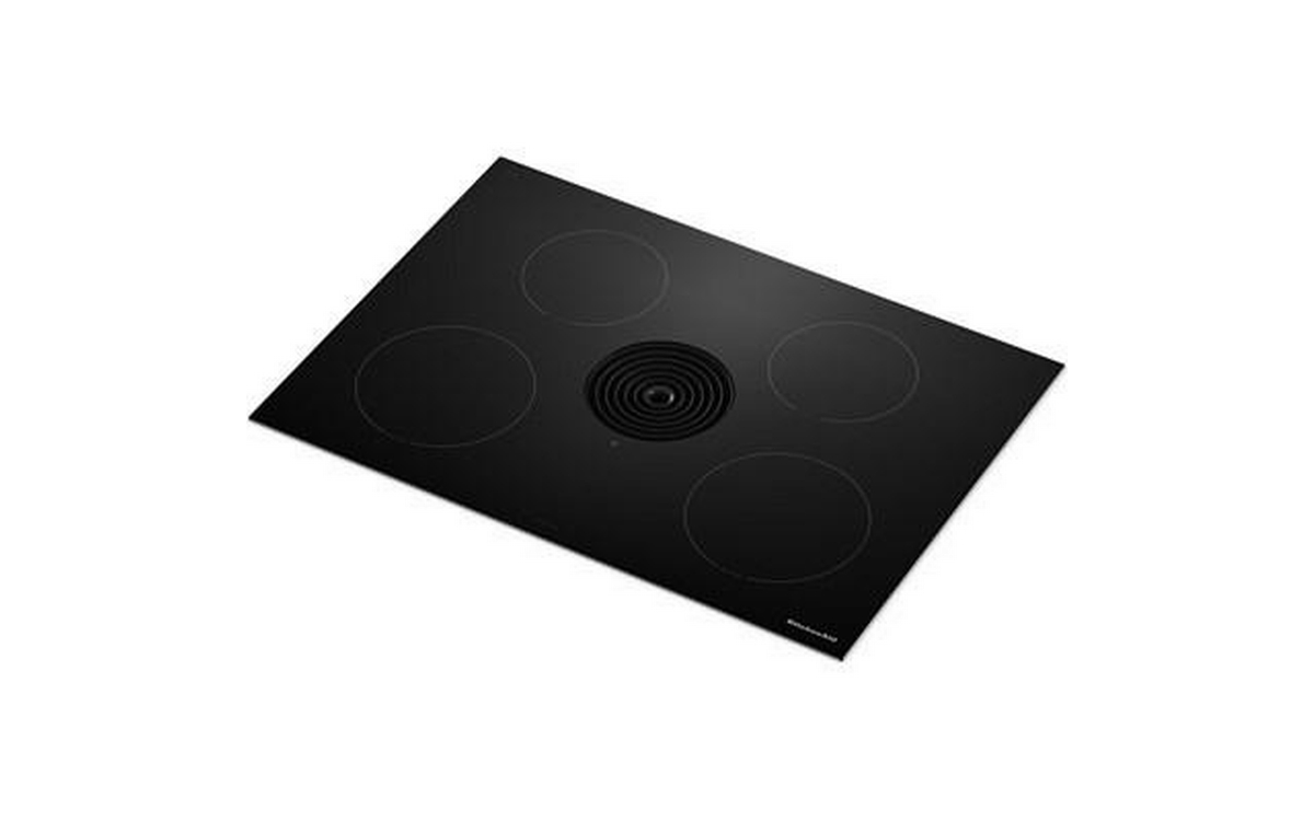 The KitchenAid 30-inch NextGen Induction Downdraft Cooktop features 4 cooking zones and an integrated downdraft system for powerful ventilation without the need for a separate hood.