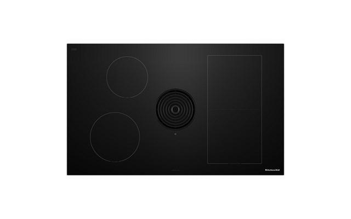 The KitchenAid 36-inch NextGen Induction Downdraft Cooktop features 4 cooking zones and an integrated downdraft system for powerful ventilation without the need for a separate hood.