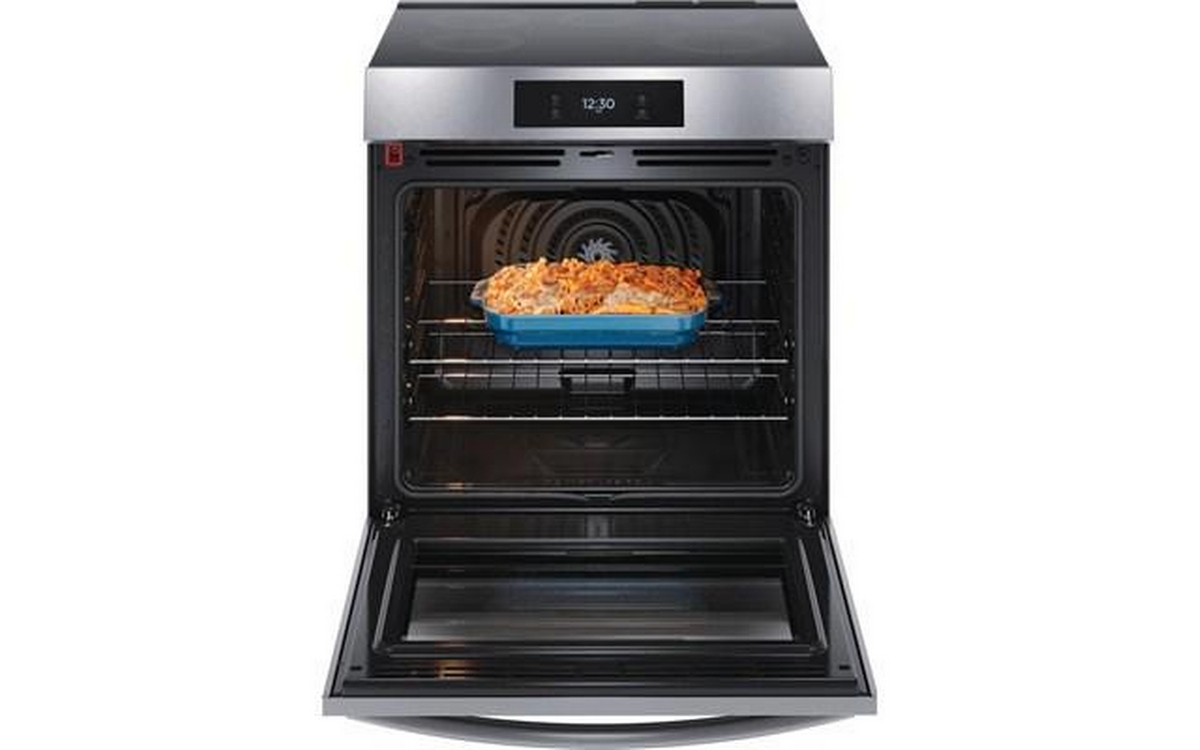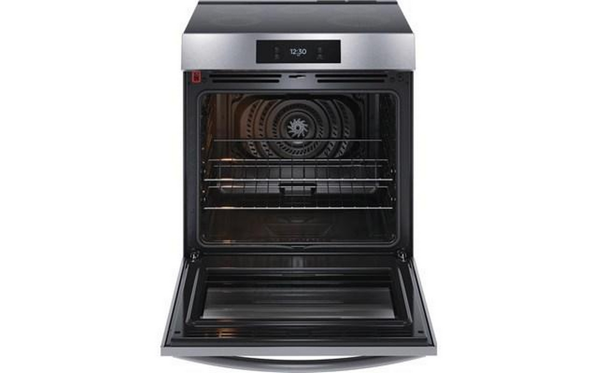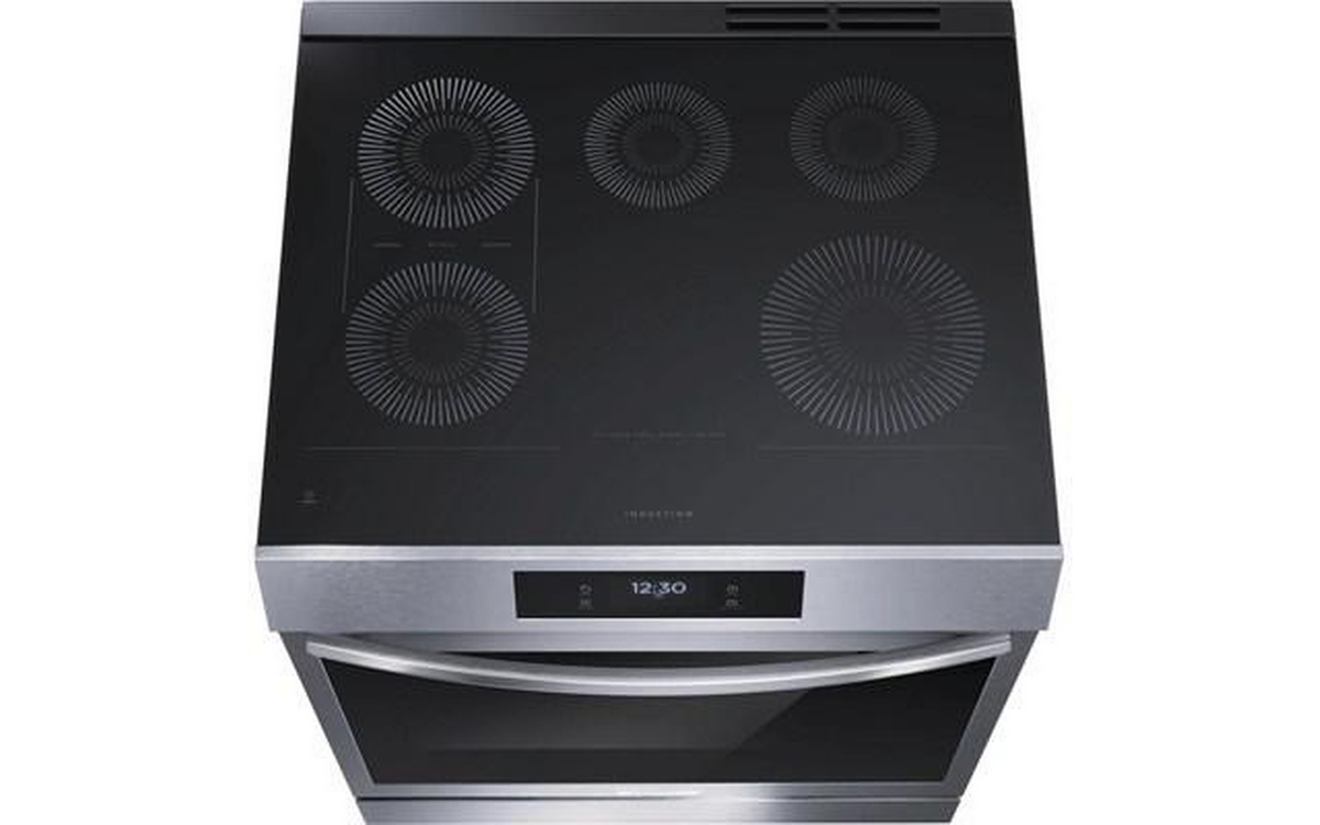 Frigidaire Gallery 30'' Front Control Induction Range with Total Convection and a 6.2 cu. ft. Capacity. Total Convection gives you maximum versatility in the kitchen, powering cooking modes like Air Fry, No Preheat, Slow Cook, Convection Bake, Steam Bake, Convection Roast, Steam Roast, Air Sous Vide, Bread Proof, Dehydrate and more! Unlike traditional electric and gas cooktops, induction only heats the pan and the food in it, so the area around the pan stays cooler, allowing you to clean up spills and splatters while you cook.