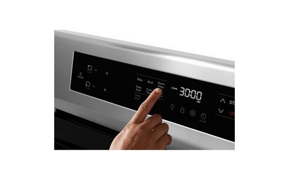 The Frigidaire 30" Rear Control Induction Range features a 3600-Watt Power Boil element that delivers both power and precision - boiling water 50% faster than gas, while offering the precision and responsiveness of induction cooking. Enjoy faster clean up with induction's easy-to-clean surface. Also, the oven features a convenient 30-minute Steam Clean option - it's chemical-free, odor-free and fast.