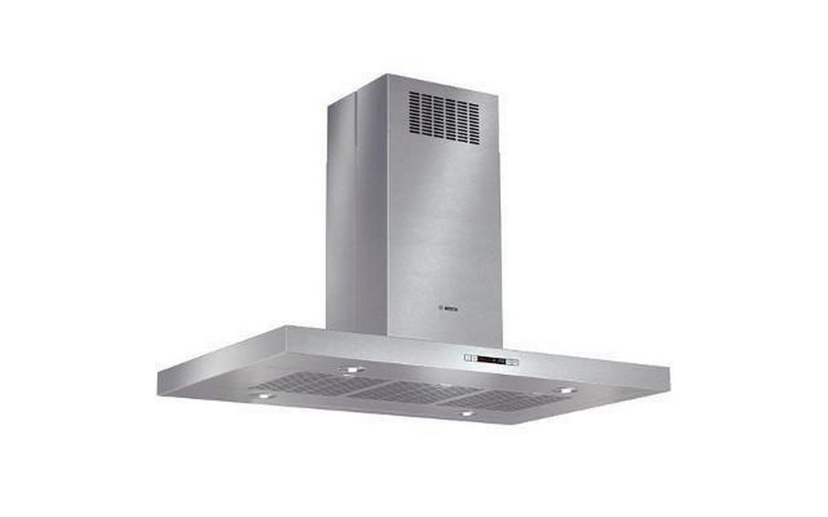 Bosch 800 Series 42" Stainless Steel box canopy island hood, features 4-speed touch controls with LCD display, audible tone when select controls are pressed, dishwasher safe filters with stainless steel covers and 600 CFM centrifugal integrated blower. Stylish island hoods perfectly complement island cooking installations.