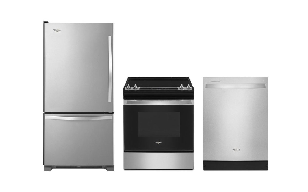 Kitchen set composed of a range, dishwasher and refrigerator by Whirlpool