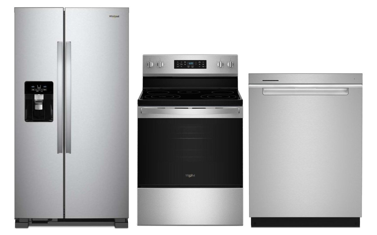 Kitchen set composed of a range, dishwasher and refrigerator by Whirlpool