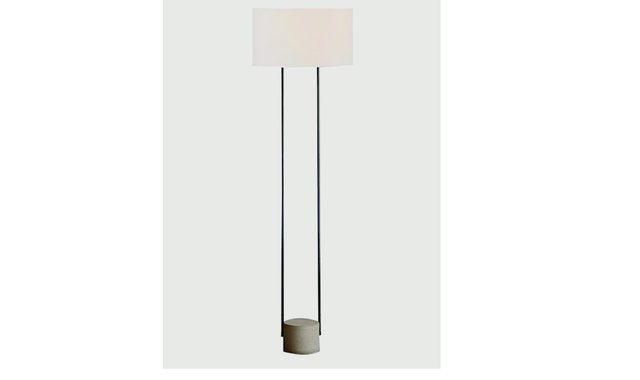 The minimalist design of this versatile lamp pairs cement and metal with a classic linen shade, celebrating the natural materials in a refined shape. This lamp's sleek silhouette is perfect for any décor or room.