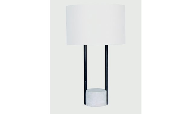 The minimalist design of this versatile lamp pairs cement and metal with a classic linen shade, celebrating the natural materials in a refined shape. This lamp's sleek silhouette is perfect for any décor or room.