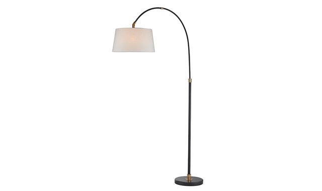 The Savannah Arched Floor Lamp With Linen Shade, Black Marble Base With Matte Black Stem And Arm Blends Harmony With Any Room. Type A 100W E26