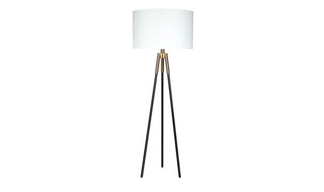 Brighten up any room with the striking style of the Tripod Table Lamp. Showing off a unique design, this modern floor lamp includes a three-way rotary switch that allows you to keep the light at a high, medium or low setting. The drum-shaped shade brings soft illumination into any room so you can enjoy a warm, relaxing ambience. 2 X Type "A" 60W (E26)