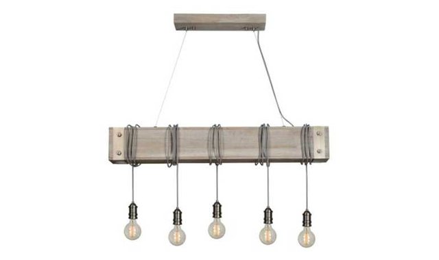 Conçu par Tatiana Jabbour, le luminaire suspendu Suzette de Renwil est doté de bois de sapin au fini blanchi.