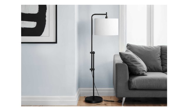 LIGHTING - 63"H FLOOR LAMP BLACK METAL / IVORY SHADE SKU#: I 9760 Step into the spotlight with our 63"h arc floor lamp in sleek black metal with a chic ivory drum shade. This contemporary piece is the perfect way to brighten up a living room, bedroom, or office to create a warm ambiance. The convenient on/off foot switch attached to an unobtrusive 6ft black cord makes it easy to illuminate and brighten your space in style. Quick and easy to assemble out of the box, this decorative accent lamp is made with high quality materials and includes a 2 year limited warranty against any defects. Add this classically modern arc lamp to your home and instantly elevate your decor!