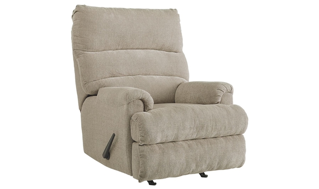 Roll out a cool look for your man cave or femme den with this indulgent recliner. Waterfall cushioning on the high back is paired with a double-roll footrest for a high-style aesthetic that cradles you in comfort from head to toe. Tweed-weave neutral upholstery is decadently soft and loaded with texture.
