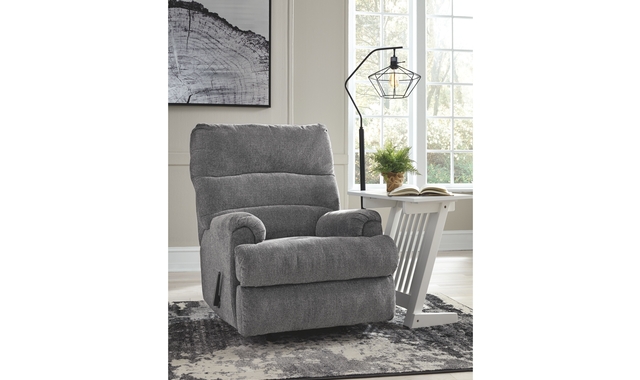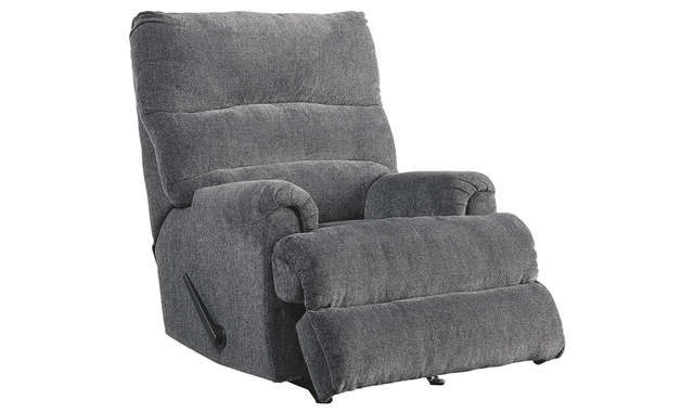 Roll out a cool look for your man cave or femme den with this indulgent recliner. Waterfall cushioning on the high chair is paired with a double-roll footrest for a high-style aesthetic that cradles you in comfort from head to toe. Tweed-weave neutral upholstery is decadently soft and loaded with texture.