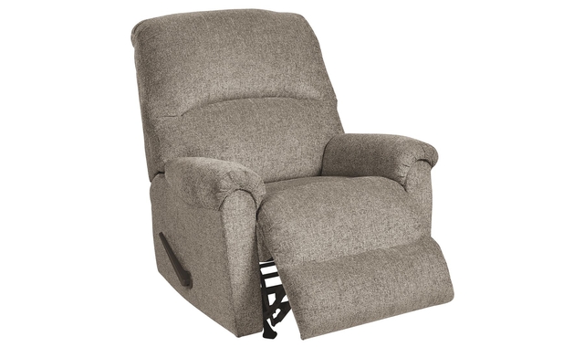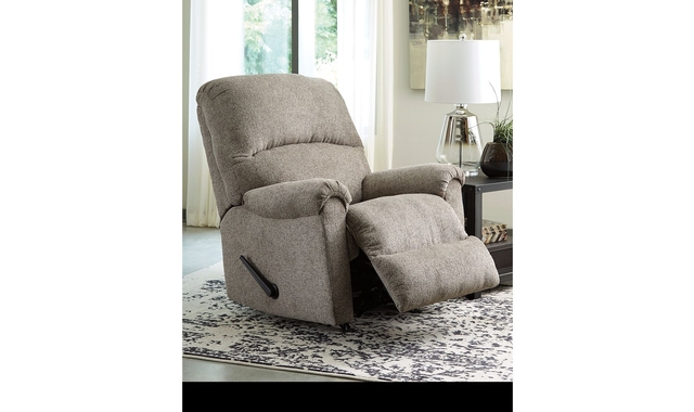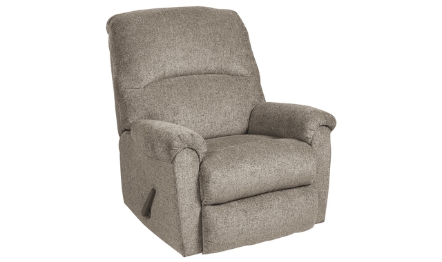 A mastery in less is more, this rocker recliner manages to make cool, contemporary design so warm and cozy. A new twist on neutral, the recliner’s soothing “platinum” tone upholstery is incredibly plush to the touch. Curved divided back and deeply tufted footrest give the clean-lined profile a sense of sumptuousness impossible to resist.