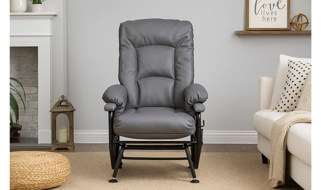 This comfortable vinyl armchair on a black metal base is rocking and self-locking. You'll love its practicality, which fits into more than one room in the house. For even more comfort ottoman also available. This classic chair is beloved for its comfortable seating and multiple adjustment functions.