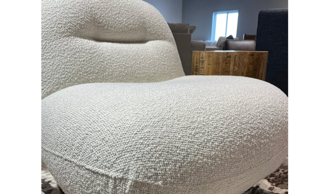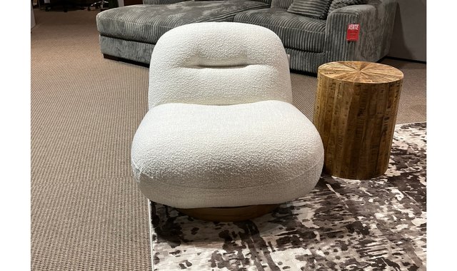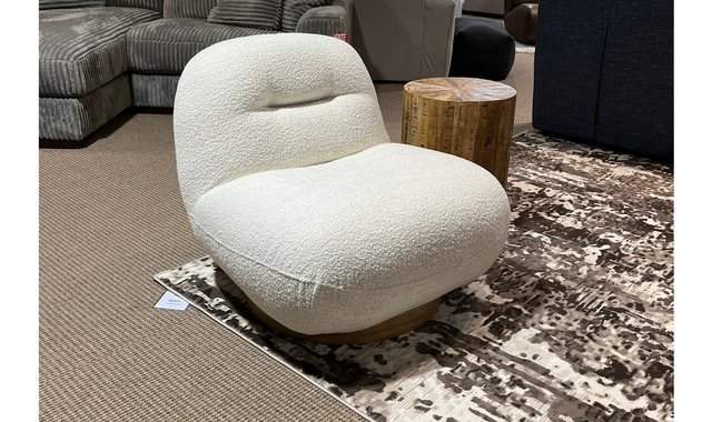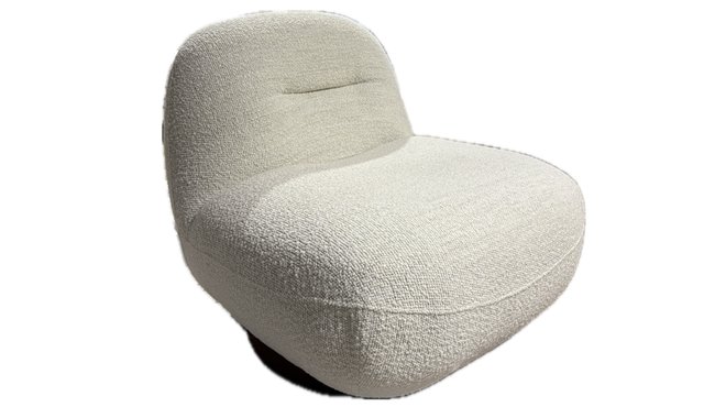 Swivel armchair, MARSHMALLOW model by BO FURNITURE - Deluxe grade fabric in polar white - Light wood base