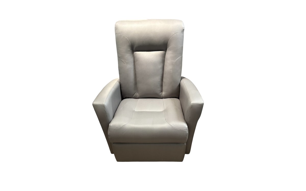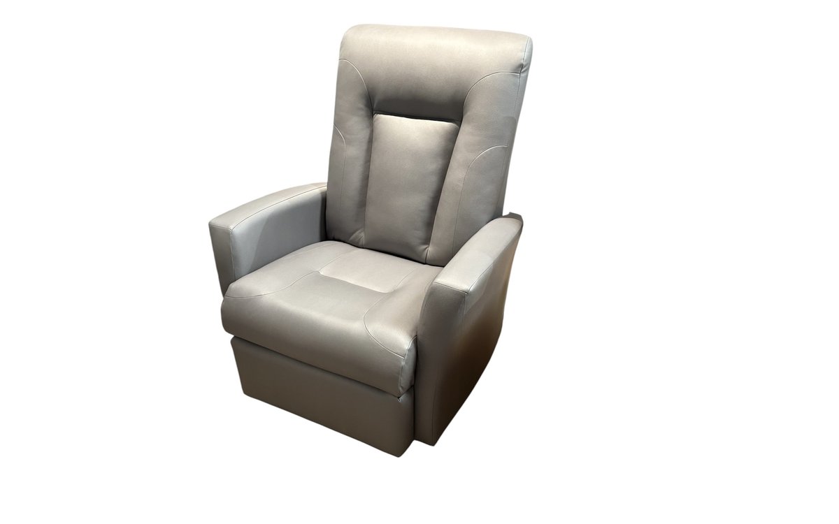 Rocking, swivel and reclining armchair by ELRAN - Grey leather, grade 36 - straight armrests and quilted back and seat cushions - Made in Quebec