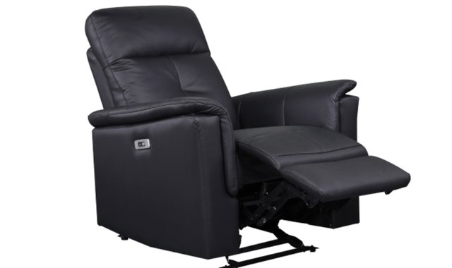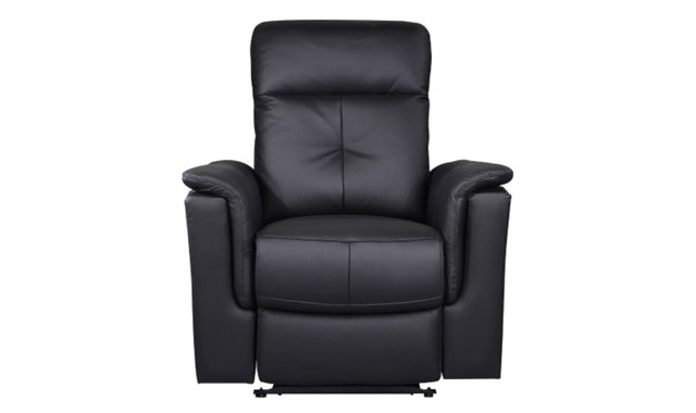 Power reclining armchair Exquisite BLACK top grain leather upholstery with faux leather-match covers the chair