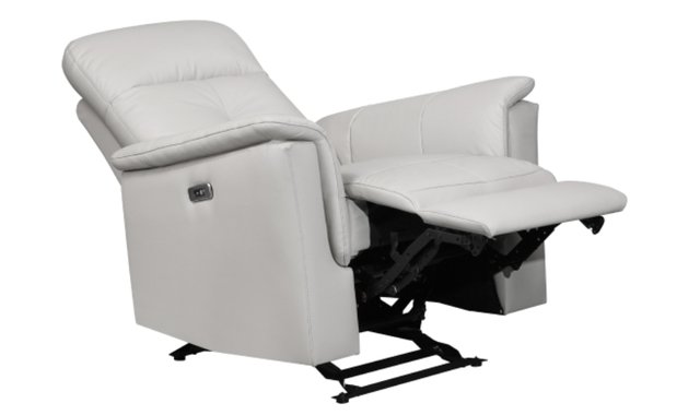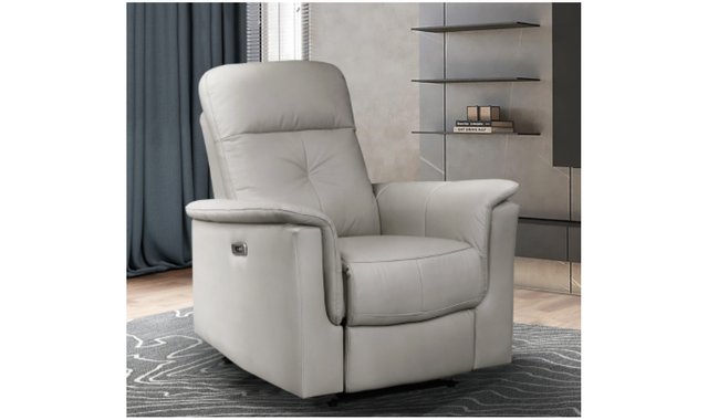 Power reclining armchair Exquisite SILVER top grain leather upholstery with faux leather-match covers the chair
