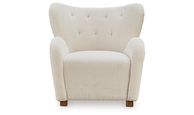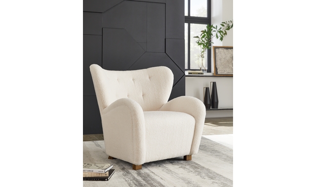 High style meets relaxation in this accent chair. Cozy faux shearling fabric keeps the look contemporary without compromising on comfort. A tufted wingback design and dramatic slope arms add high-fashion flair. It's the perfect place to curl up and enjoy your favorite book or podcast.