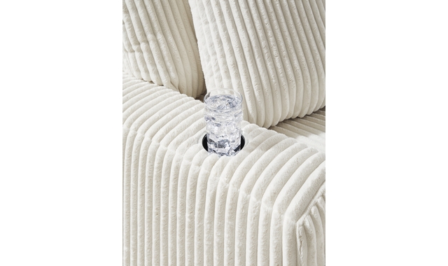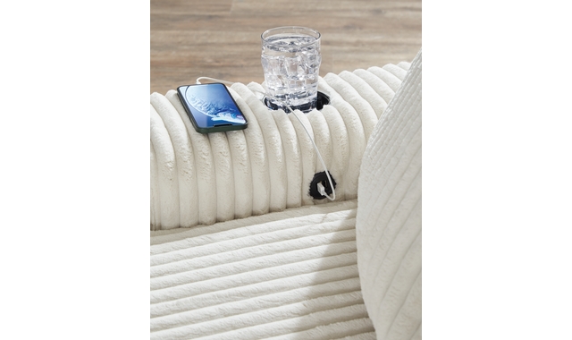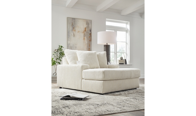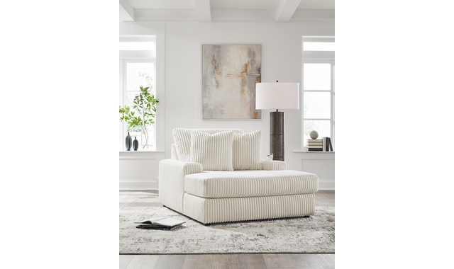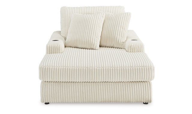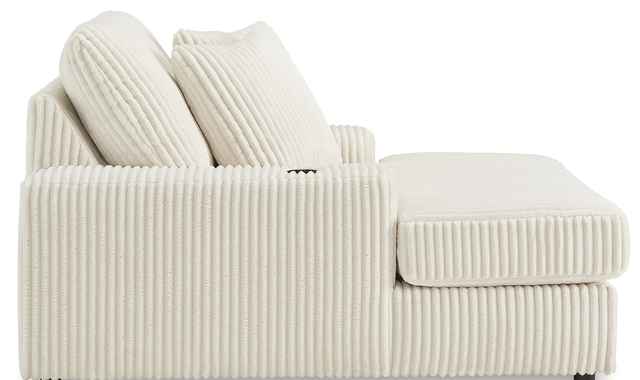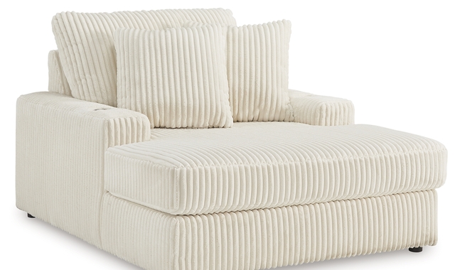 Plush and posh. Showcase your eye for on-trend texture with the statement-making cord upholstery of this chaise. Its stunningly soft fabric entices in an ivory hue, complementing contemporary color palettes. Sink into the cushions and plan to stay a while—this cozy oversized chaise highlights your high-end approach to comfort and style.