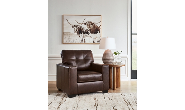 Whether your inspiration is contemporary or classic, this chair's good looks and affordable luxury are hard to deny. Its clean-lined silhouette and skillfully matched leather and faux leather upholstery offer a transitional sensibility that's right at home in your home. And the ample cushions with tufted details invite you to relax in comfort.